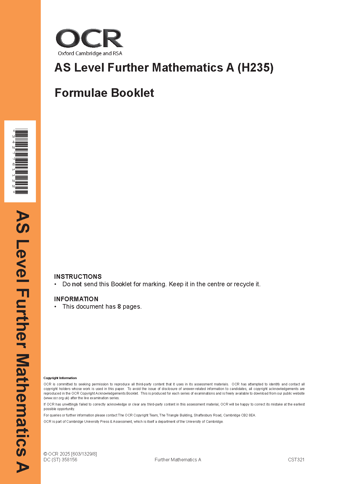 OCR AS FURTHER MATHEMATICS A 2025 FORMULAE BOOKLET (H235)