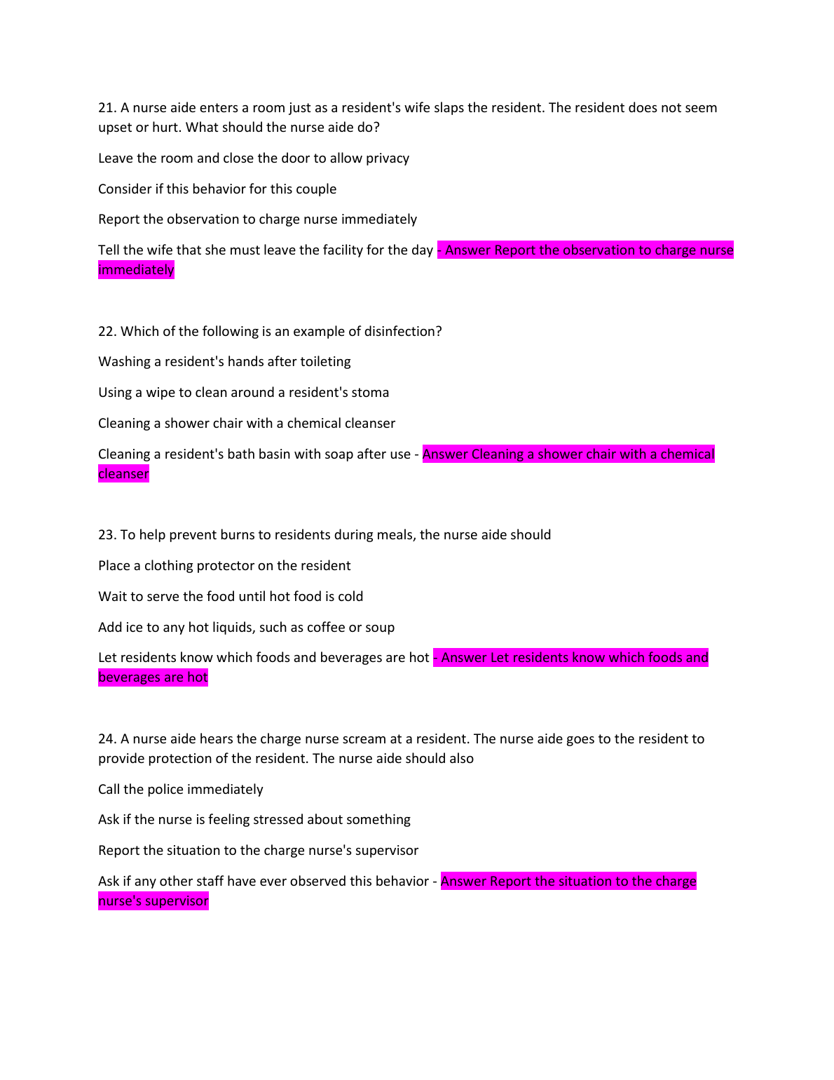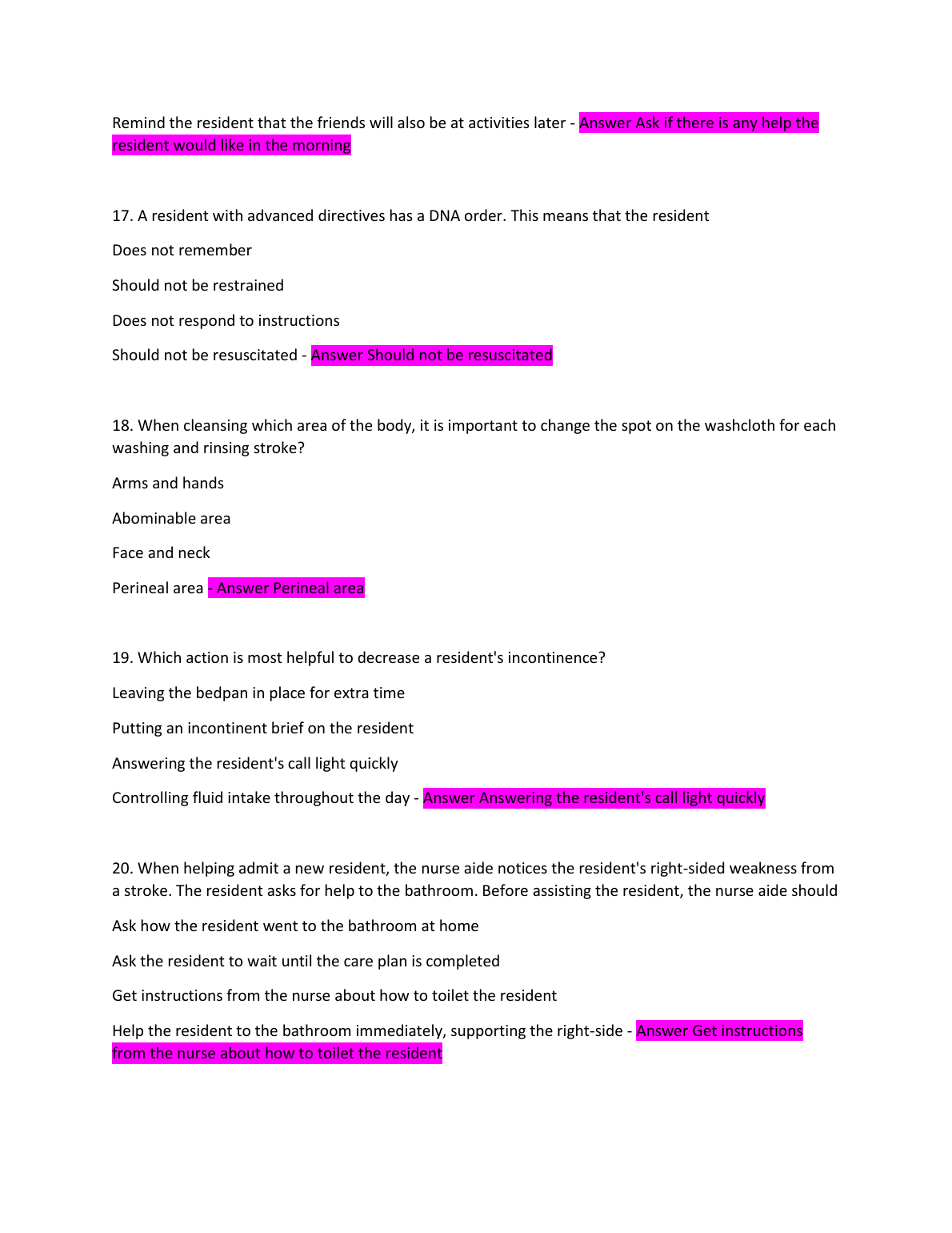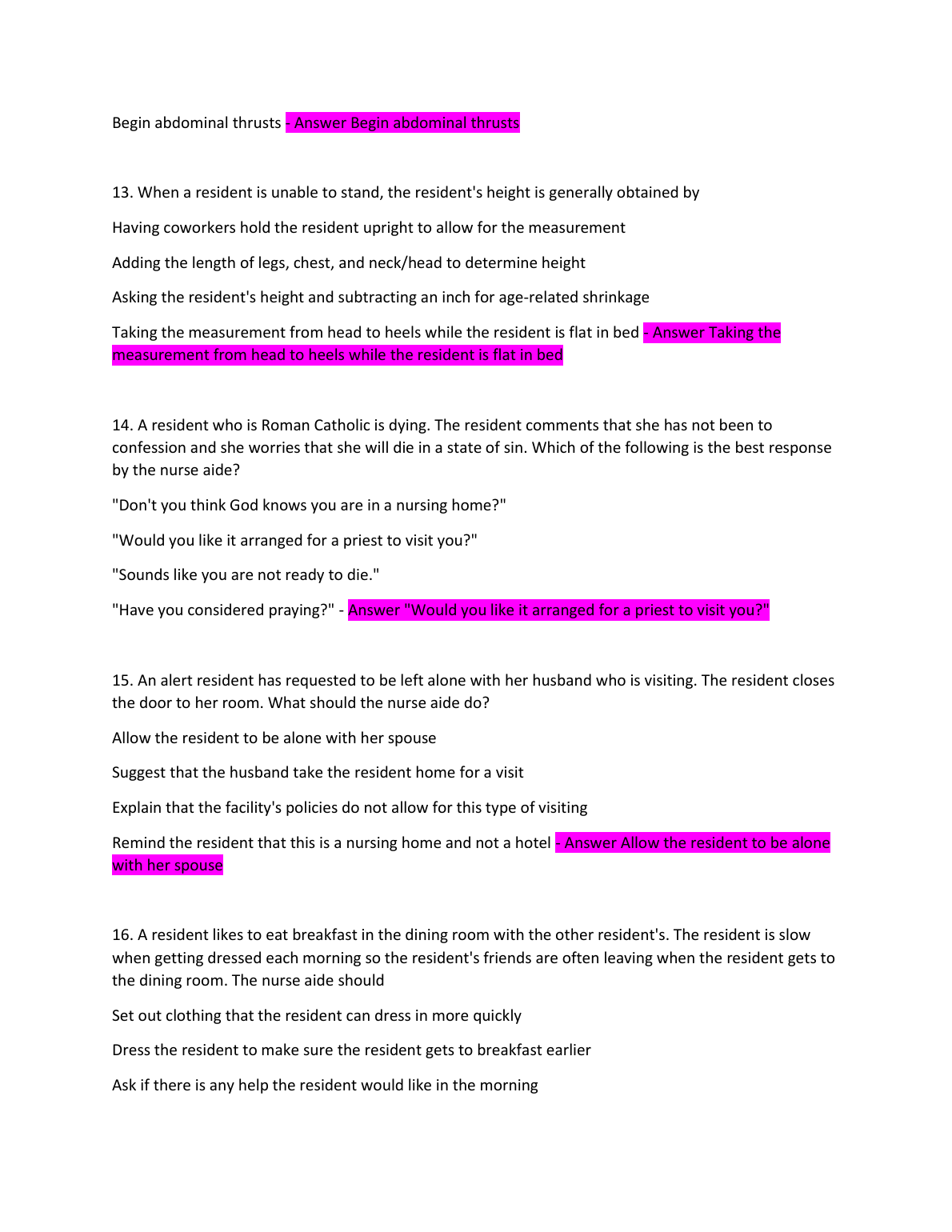 CNA Written Exam. Questions and Answers. GRADED A+