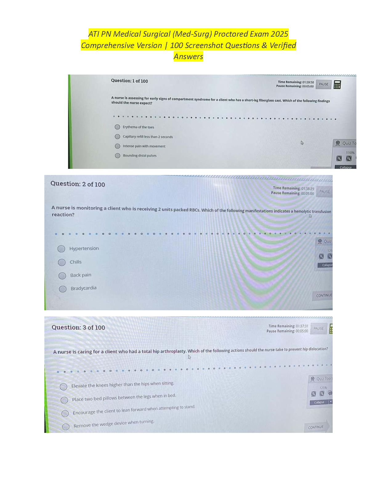 ATI PN Medical Surgical (Med-Surg) Proctored Exam 2025/2026 Test Bank: 100 Verified Questions & Answers to Pass on Your First Attempt