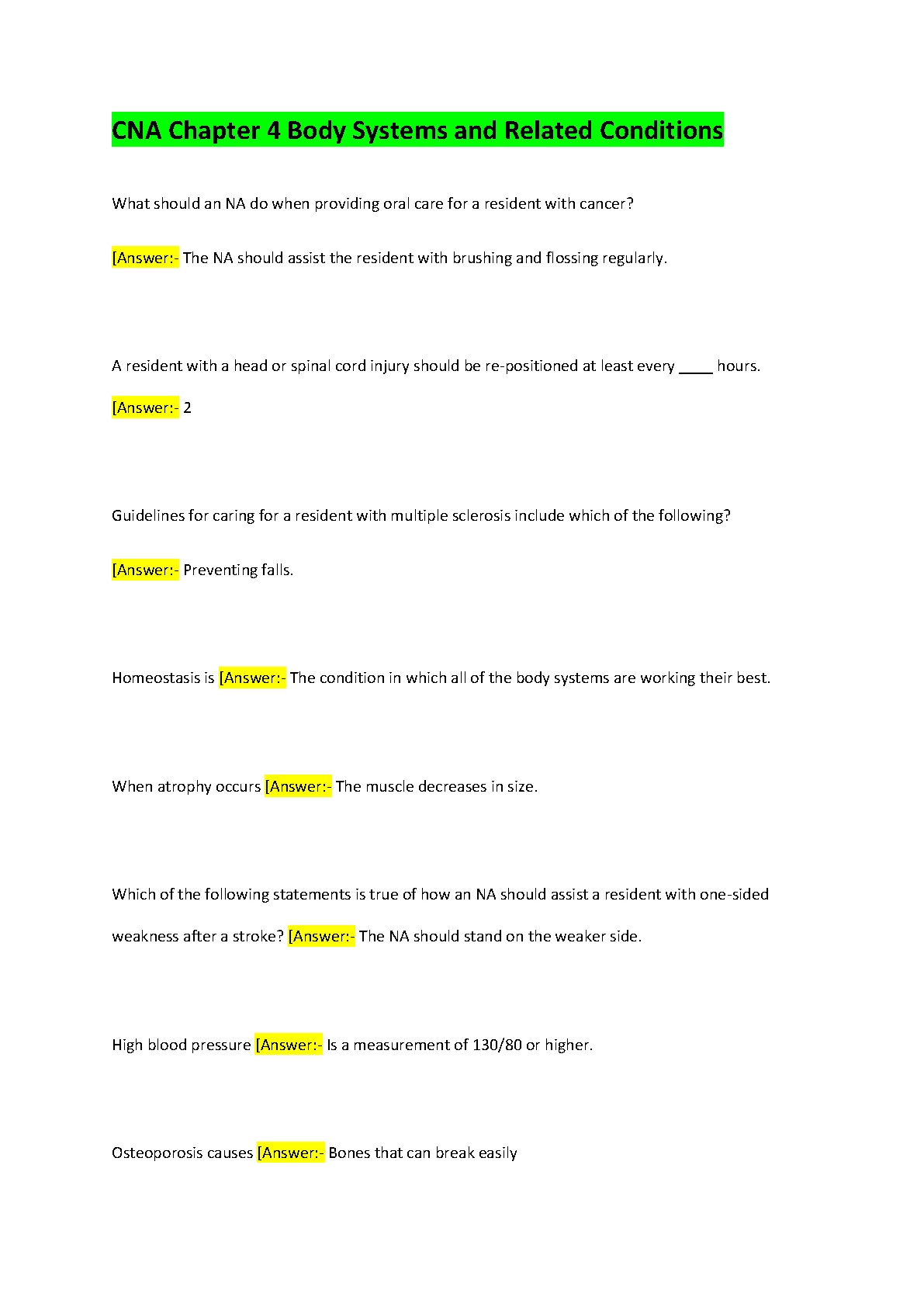 CNA Chapter 4 Body Systems and Related Conditions. BRAND NEW 2023!!!. DOWNLOAD on www.hackedexams.com INSTANTLY.