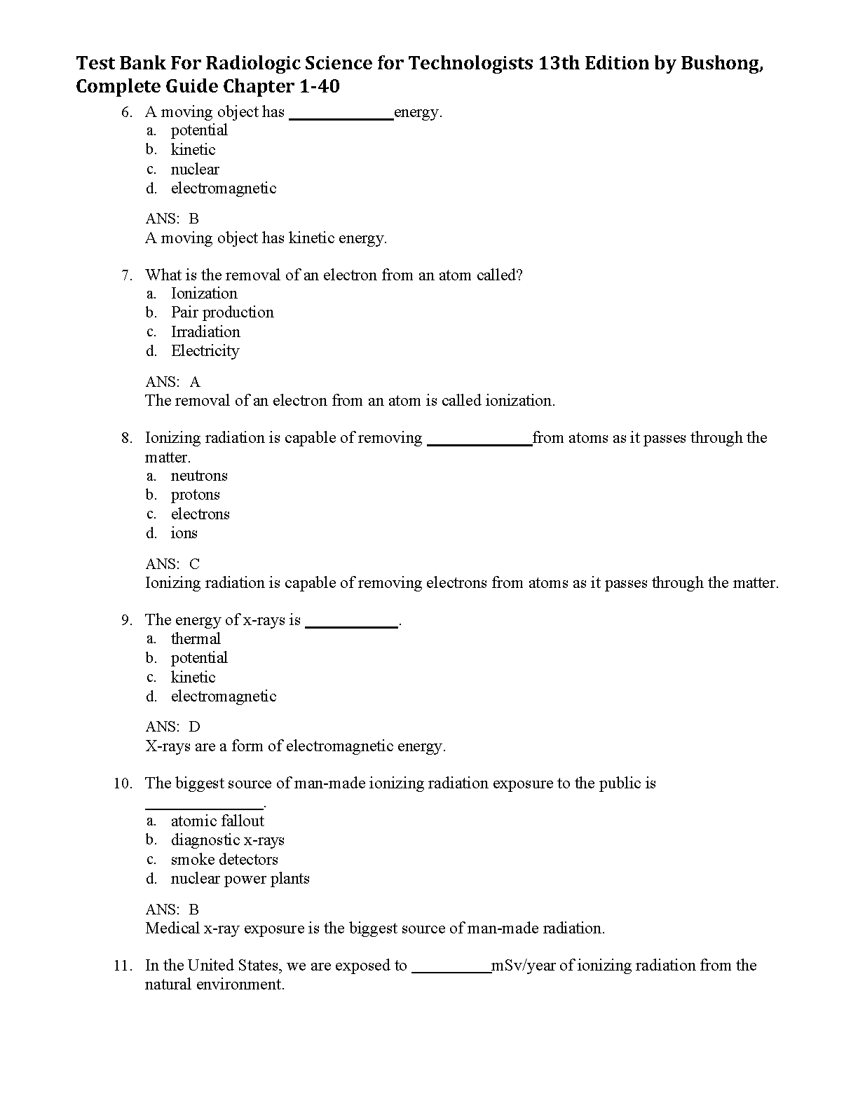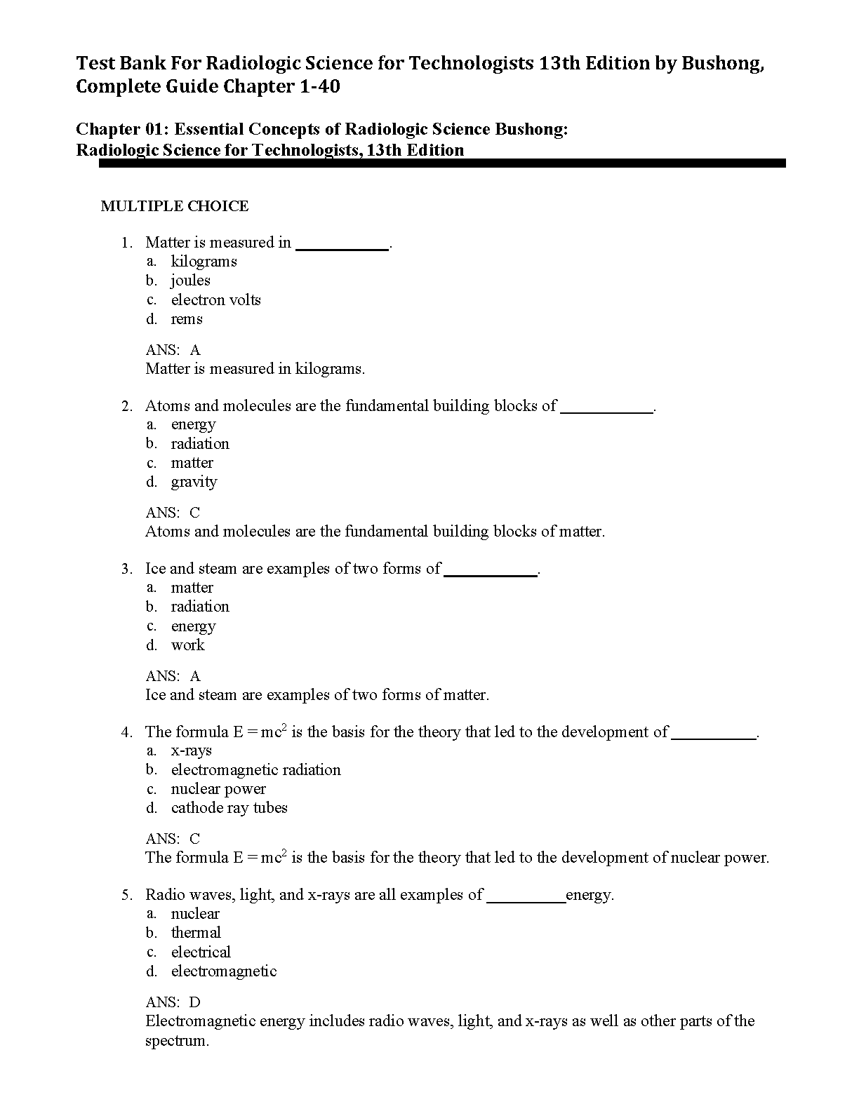 Gain a competitive edge in your studies with the complete Test Bank for Bushong's Radiologic Science for Technologists, 13th Edition. This essential study guide, authored by Stewart Carlyle Bushong and Elizabeth S. Shields, provides an extensive collection of questions and answers covering all 40 chapters. Deepen your understanding of physics, biology, and radiation protection, and effectively prepare for your exams. This resource is meticulously designed to help you master the material, build confidence, and achieve top grades.