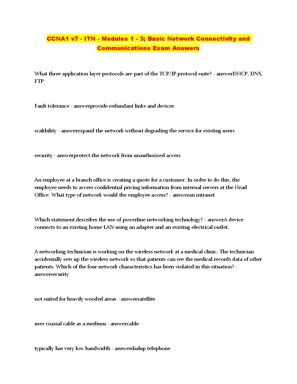 CCNA1 v7. ITN (Modules 1 - 3) Basic Network Connectivity and Communications Exam Answers. LATEST UPDATED VERSION 2023. DOWNLOAD on www.hackedexams.com INSTANTLY.