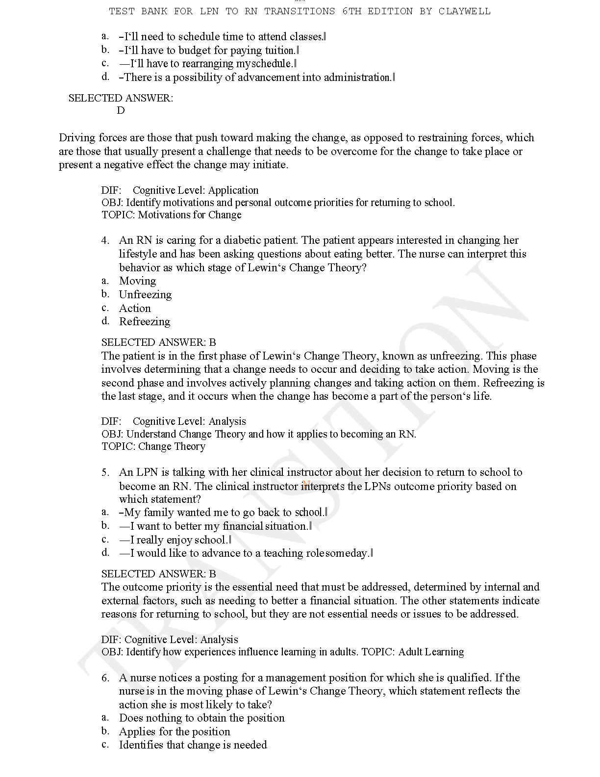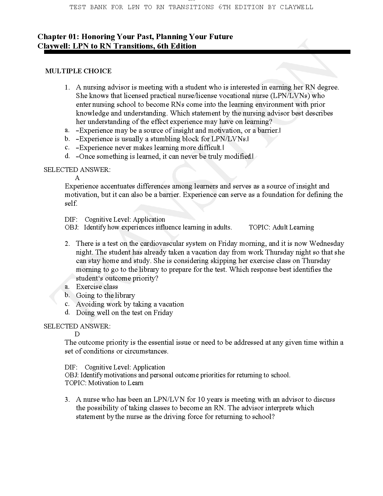 Test Bank for LPN to RN Transitions, 6th Edition by Lora Claywell