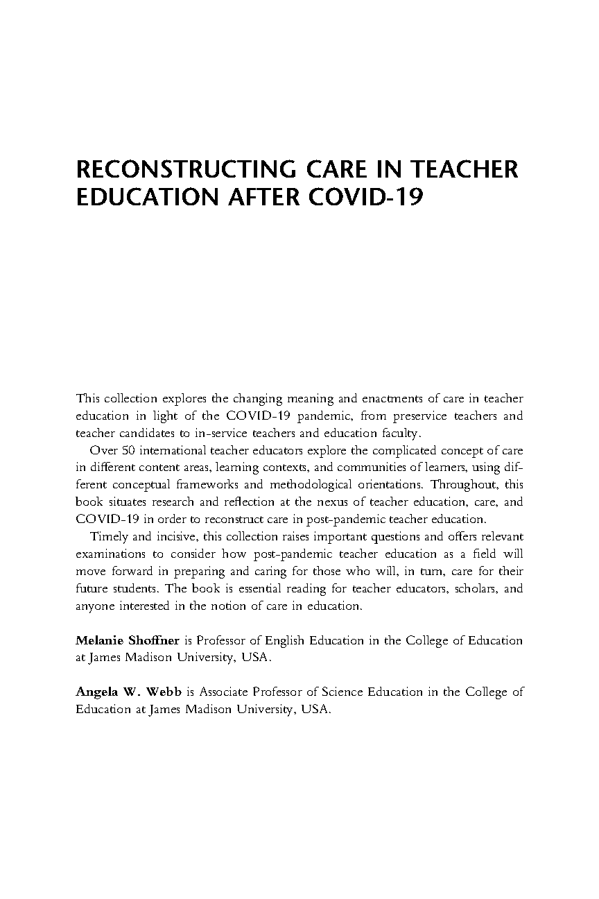 Reconstructing Care in Teacher Education After COVID-19: 1st Edition by Melanie Shoffner & Angela W. Webb - 2025/2026 Essential Resource for Educators