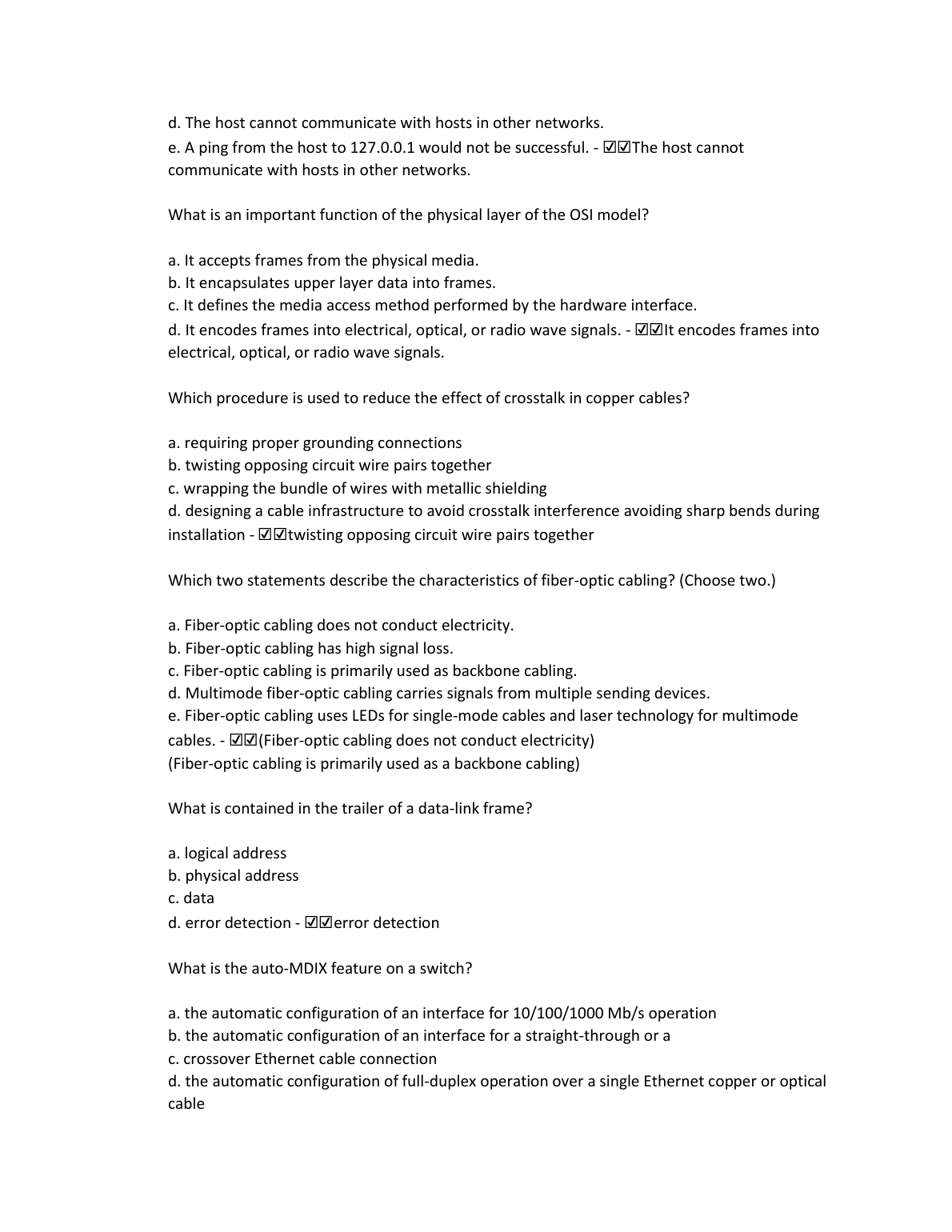 CCNA 1 Final Exam Questions & Answers. Latest 2023 Version. Graded A+. DOWNLOAD on www.hackedexams.com INSTANTLY.