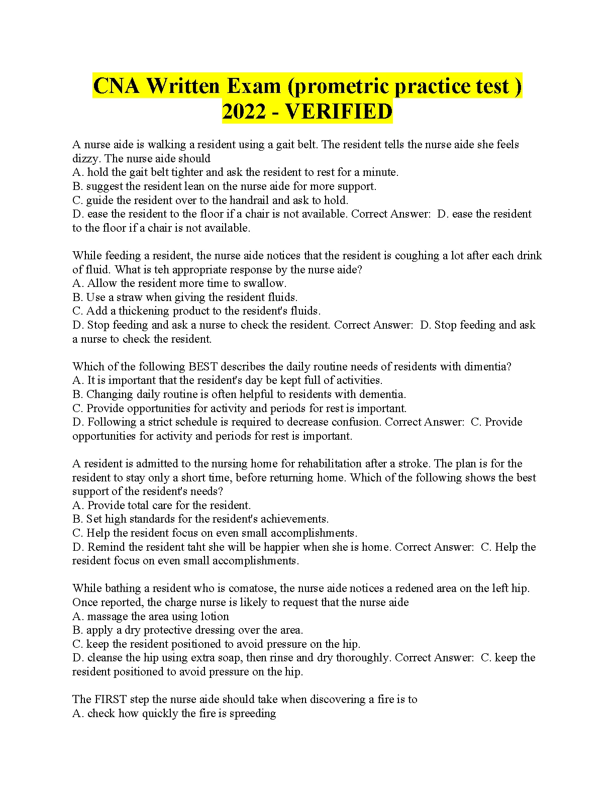 CNA Written Exam (Prometric Practice Test) BRAND NEW 2023!!!
