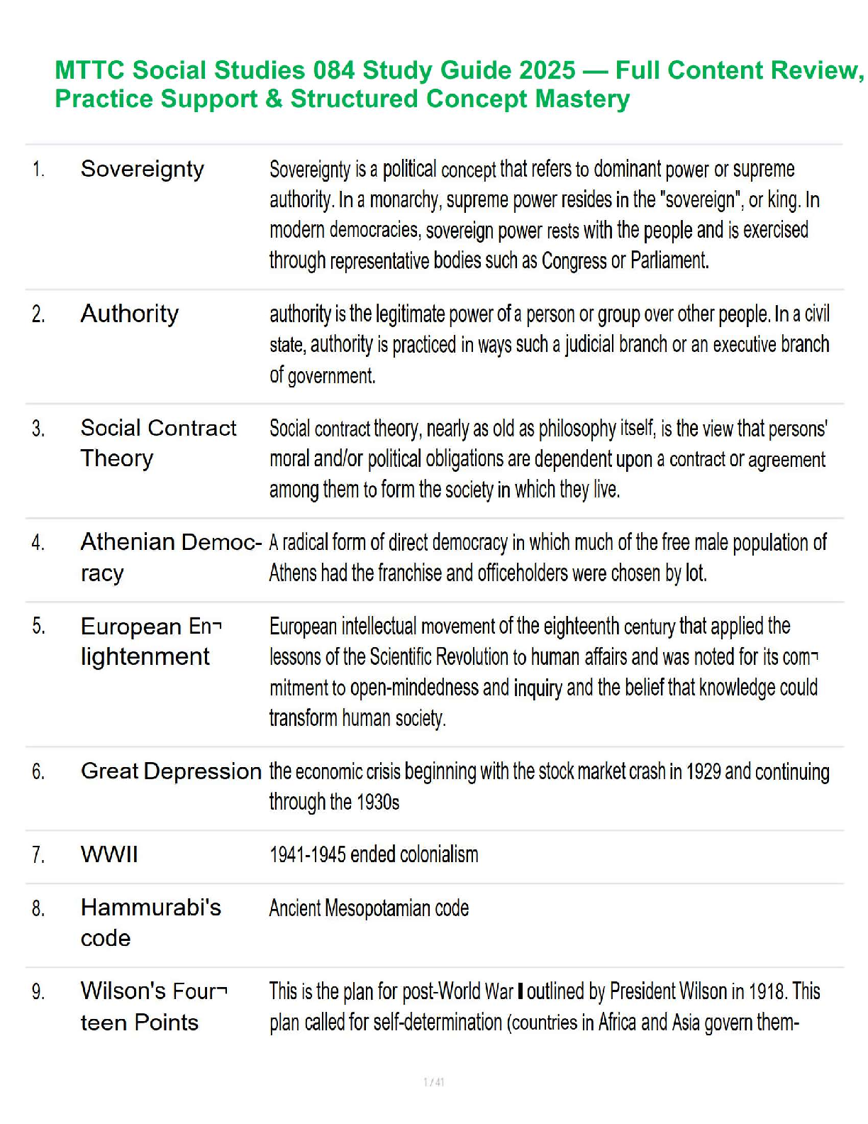 Ace the Michigan Test for Teacher Certification (MTTC) Social Studies (084) exam with our newly updated 2025-2026 study guide. This ultimate resource is designed for structured concept mastery, providing a full content review of all essential topics. From foundational political theories like Sovereignty and Social Contract Theory to pivotal historical events such as the Great Depression and WWII, everything you need is here. Prepare effectively, understand key concepts deeply, and pass your exam on the first attempt, avoiding costly resits.