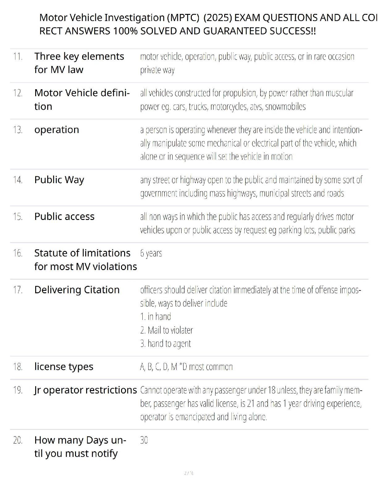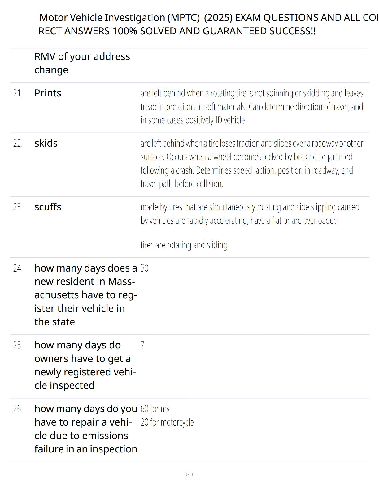 Ace your Municipal Police Training Committee (MPTC) exam with our fully updated Motor Vehicle Investigation Study Review Guide for the 2025/2026 academic year. This comprehensive learning companion covers all essential topics to ensure you pass on your first try, including the RESPECT model for crash investigations, windshield size-up procedures, patrol car positioning, and the USASIR model for warrantless arrests. Master the critical concepts and legal frameworks needed for a successful career in law enforcement with this targeted and easy-to-follow guide.