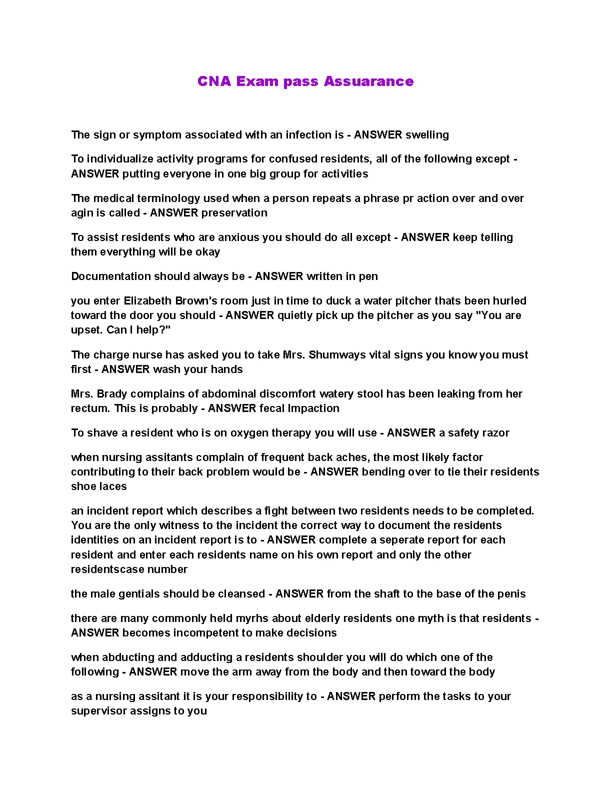CNA Exam. QUESTIONS AND ANSWERS 2023. GRADED A+