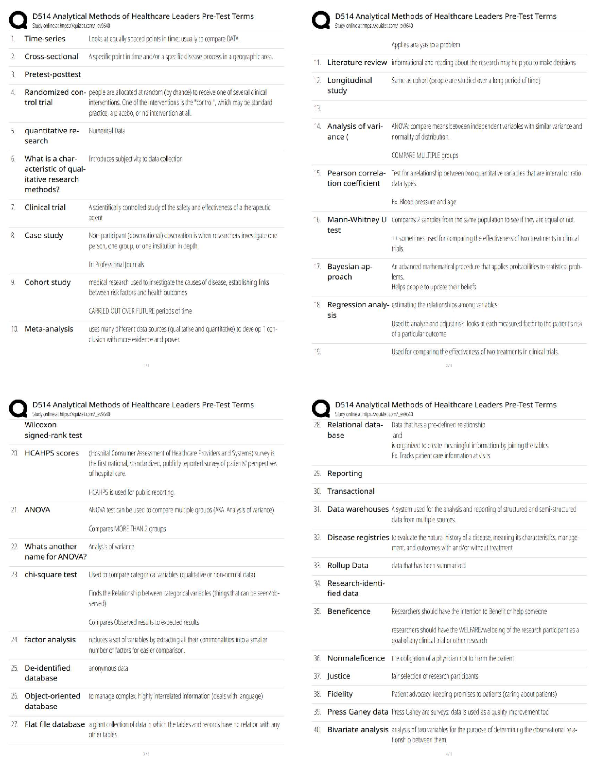 Unlock success in your WGU D514 course with our newly updated 2025/2026 study guide. This comprehensive resource provides detailed elaborations on all essential pre-test terms for 'Analytical Methods of Healthcare Leaders.' From statistical analyses like ANOVA and Chi-square to research methodologies and ethical considerations, we've broken down every critical concept you need to know. This guide is expertly designed to help you grasp complex topics quickly, ensuring you are fully prepared to pass your exams on the very first attempt and avoid any resits. Download now and take the first step towards mastering healthcare analytics.