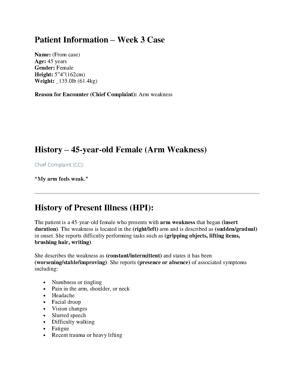 Master iHuman Case Week #3: 2025/2026 Guide for 45-Year-Old Female with Arm Weakness - Pass Exams First Time!