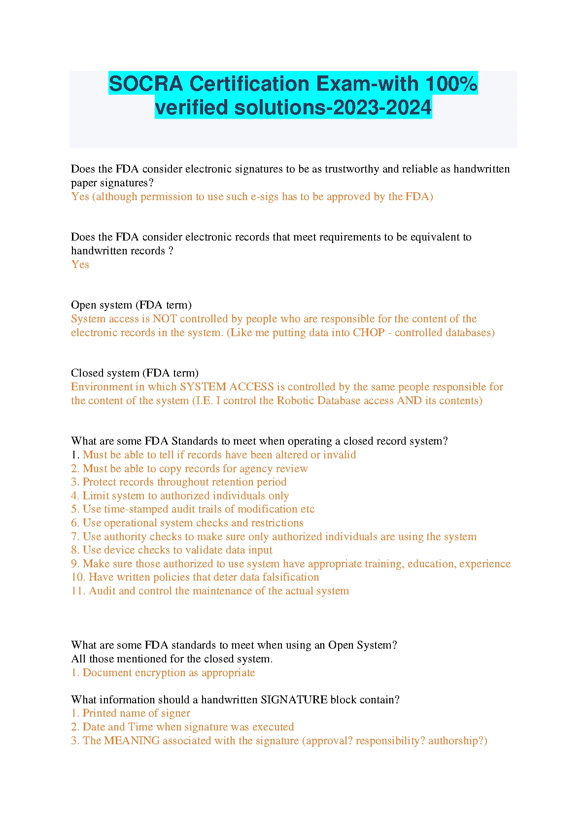 SOCRA Certification Exam With 100% Verified Solutions 2023/2024. DOWNLOAD on www.hackedexams.com INSTANTLY.