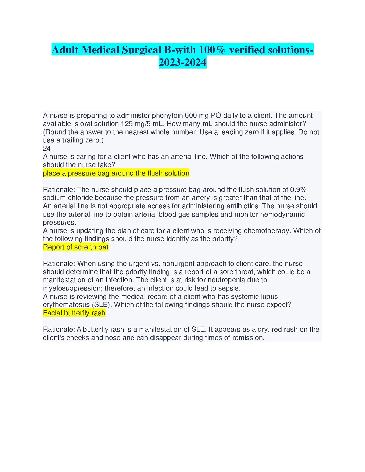 Adult Medical Surgical B. QUESTIONS WITH COMPLETE SOLUTIONS 2023/2024. DOWNLOAD on www.hackedexams.com INSTANTLY.