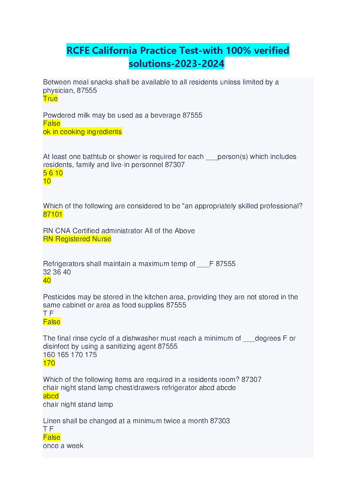 RCFE California Practice Test With 100% Verified Solutions 2023/2024. DOWNLOAD on www.hackedexams.com INSTANTLY.