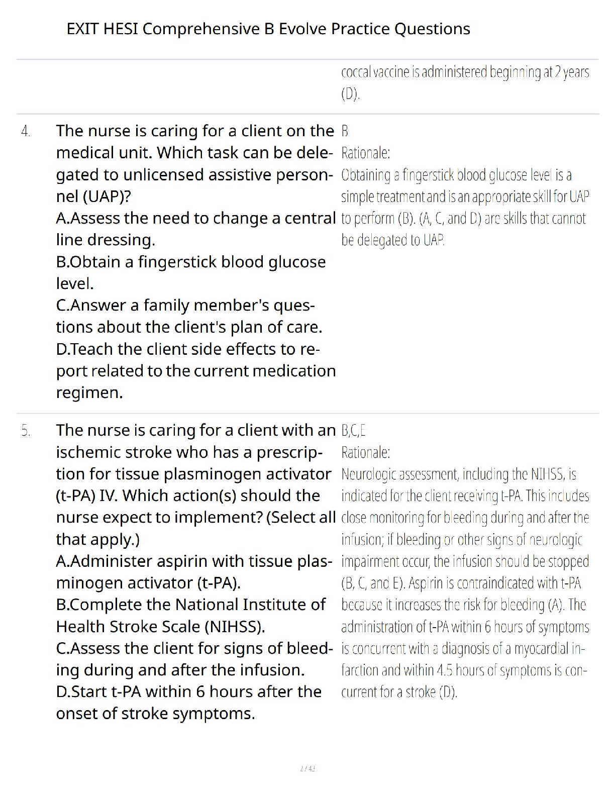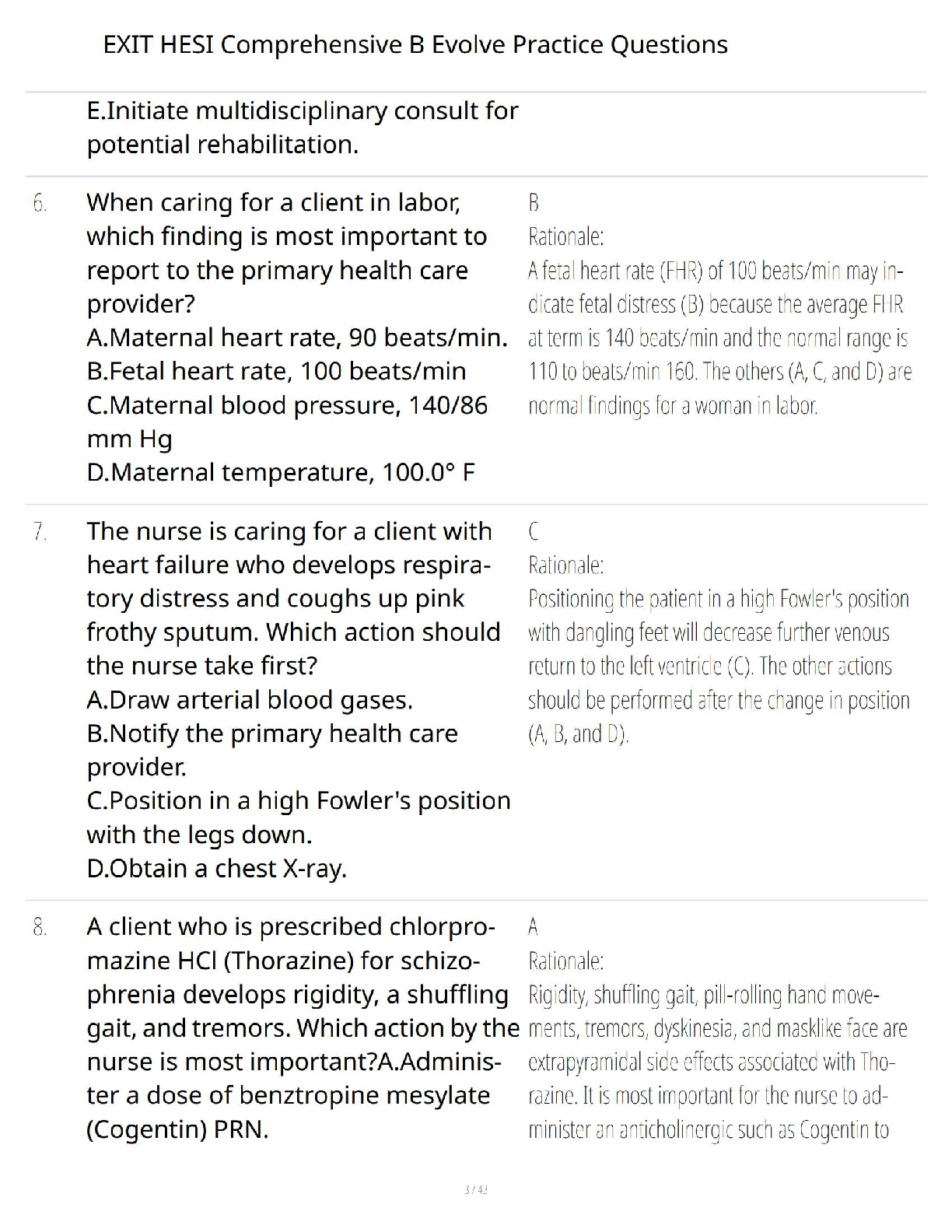 Ace your HESI Exit Exam with our definitive 2025 Comprehensive B Test Bank! This complete study guide is packed with a wide array of practice questions that mirror the actual exam format. Each question is paired with a detailed, easy-to-understand rationale, explaining not just the correct answer, but why the other options are incorrect. Designed to provide focused review and boost your exam readiness, this resource is your key to mastering complex nursing concepts, improving critical thinking skills, and walking into your exam with confidence. Prepare effectively, avoid resits, and secure your success on the first attempt with this essential 2025 HESI study tool.