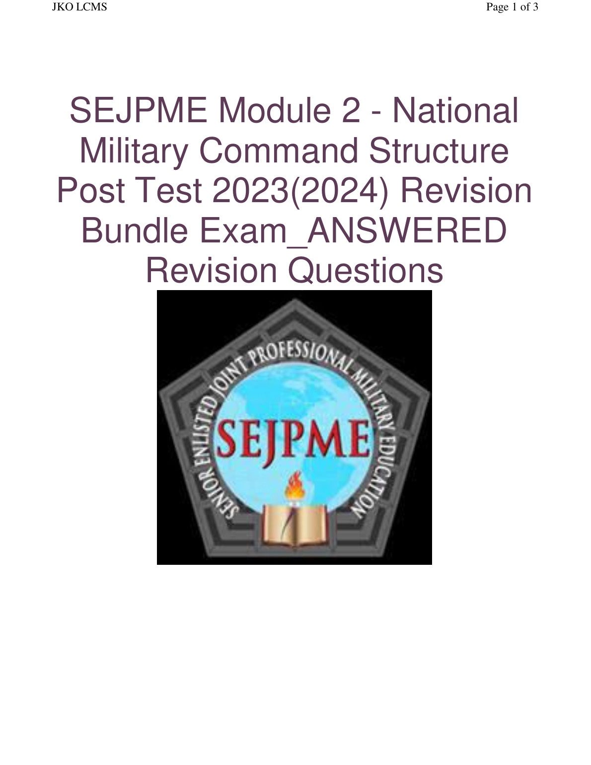 SEJPME Module 2 National Military Command Structure Post Test 2023/2024. DOWNLOAD on www.hackedexams.com INSTANTLY.