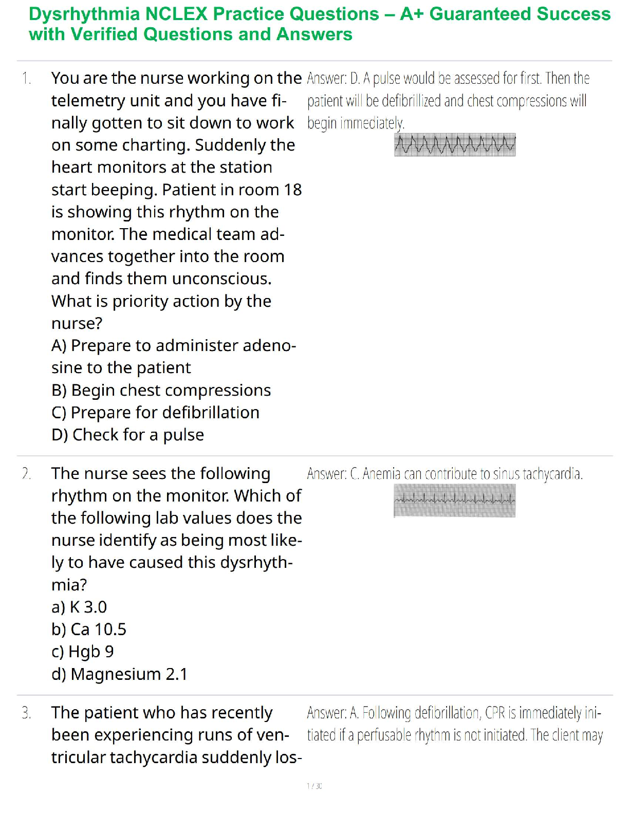 Master the critical skill of dysrhythmia and EKG interpretation for the NCLEX-RN exam with our comprehensive test bank. This essential study guide features a curated collection of practice questions, complete with verified answers and detailed rationales, designed to mirror the actual exam format. Deepen your understanding of cardiac rhythms, patient scenarios, and priority nursing actions. This resource is expertly crafted to boost your confidence and help you pass the NCLEX on your first attempt, ensuring you are fully prepared for success in your nursing career.