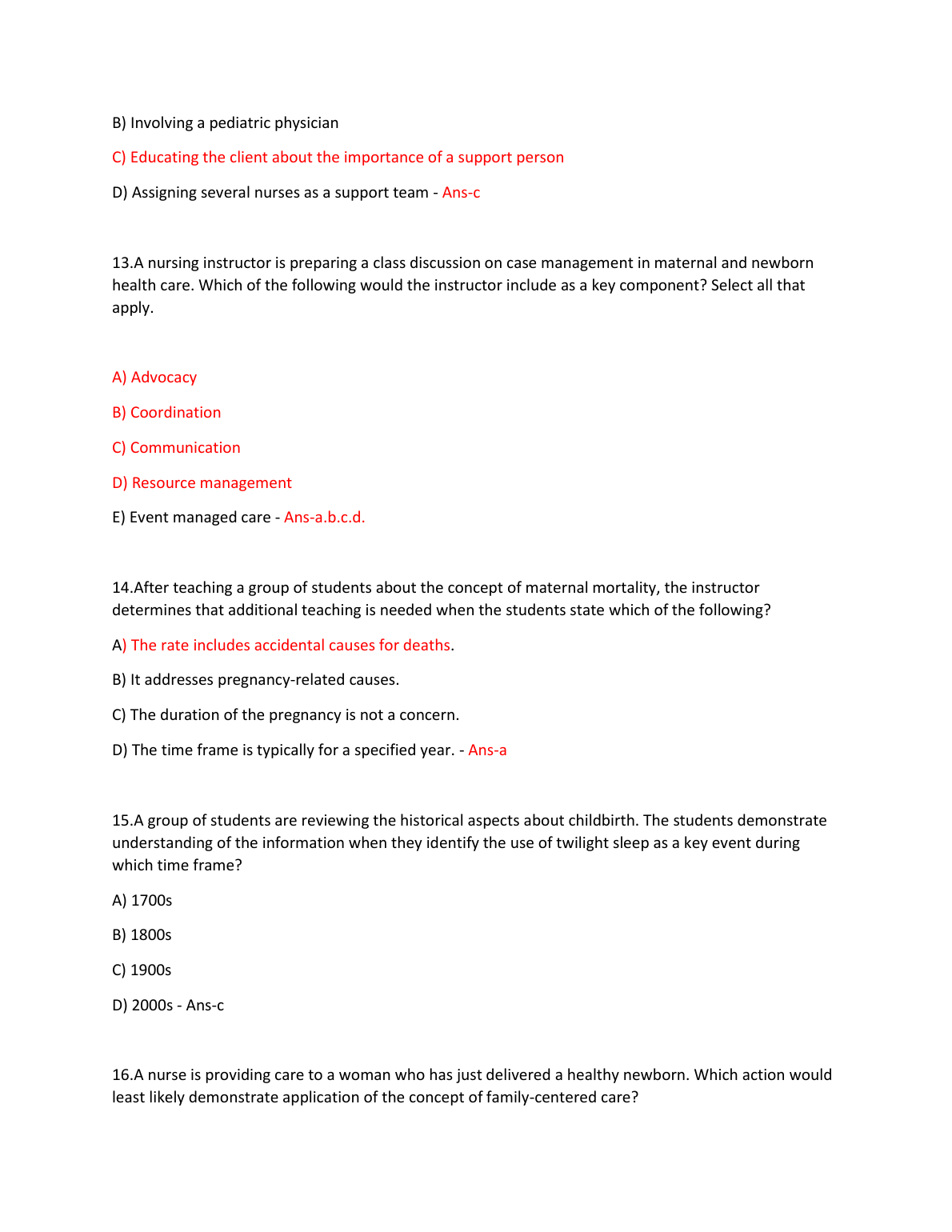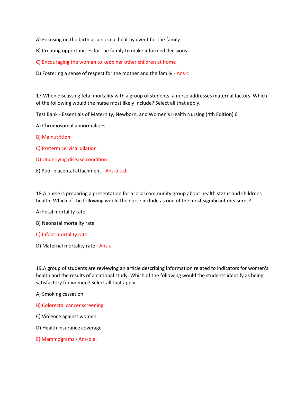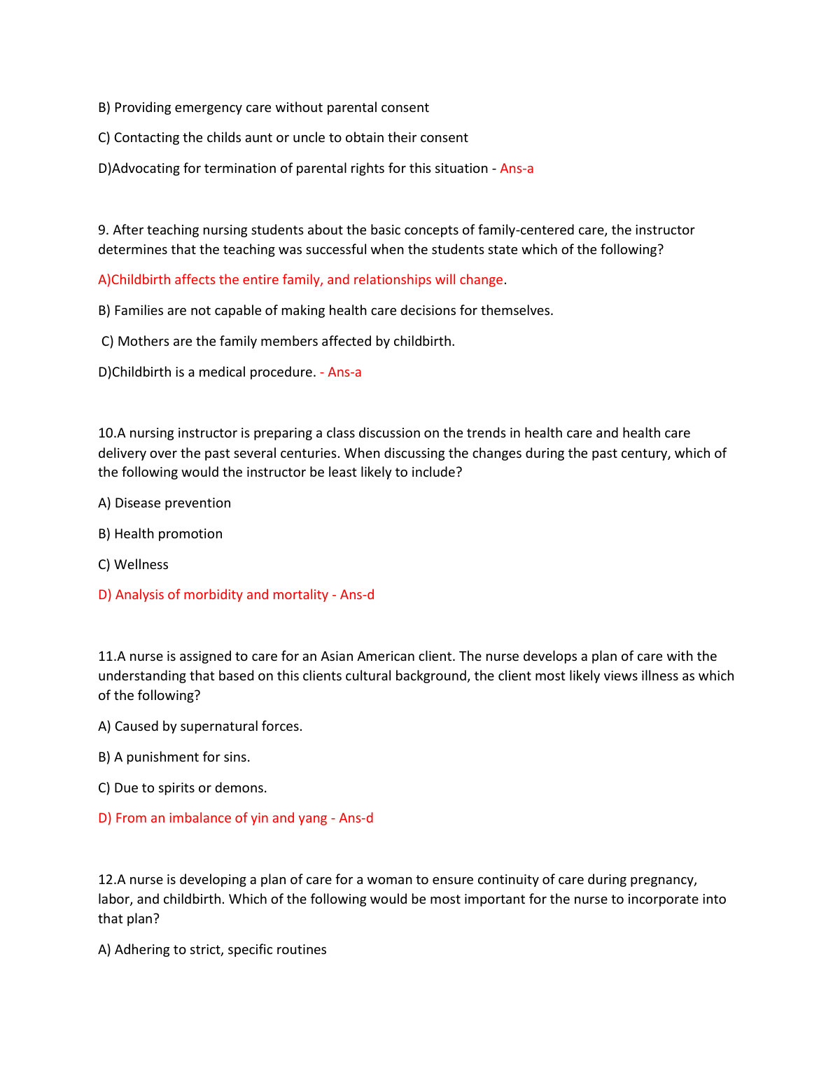 Maternal Child Nursing Chapter 1. Questions with Answers. Rated A+