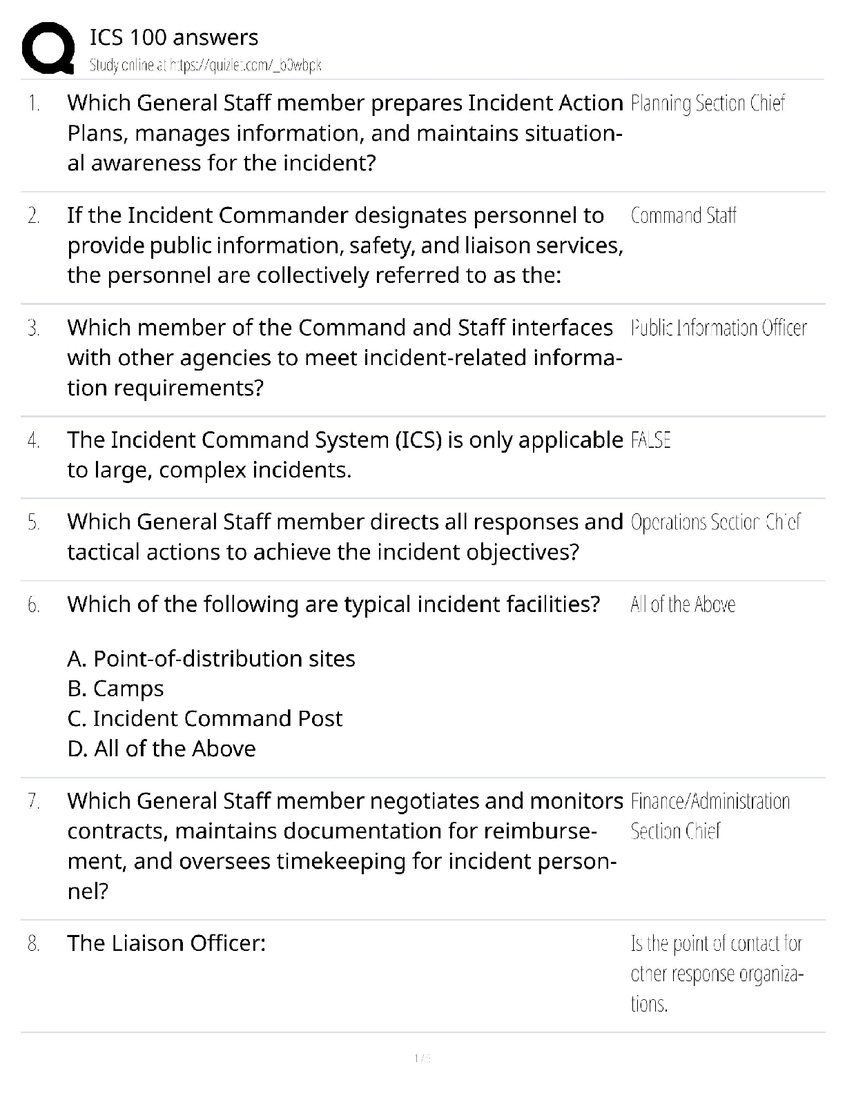 Unlock success in your FEMA certification with our comprehensive test bank for IS-100.C: Introduction to the Incident Command System (ICS 100). This premium study resource, updated for the 2025/2026 academic year, is packed with the latest exam questions and 100% accurate, verified answers. It covers all critical areas, including the roles and responsibilities of Command and General Staff, ICS principles, and incident management procedures. This test bank is expertly designed to help you master the material efficiently and pass your exam on the very first attempt, saving you from the stress and cost of resits. Get the edge you need to excel!