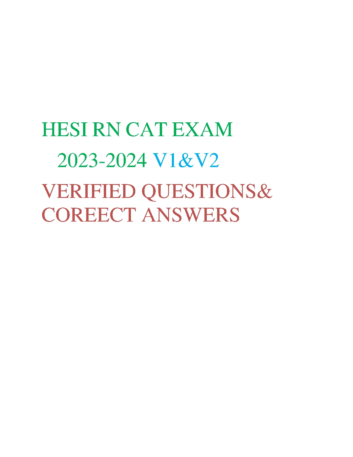 HESI RN CAT EXAM. V1&V2 VERIFIED QUESTIONS & ANSWERS 2023/2024