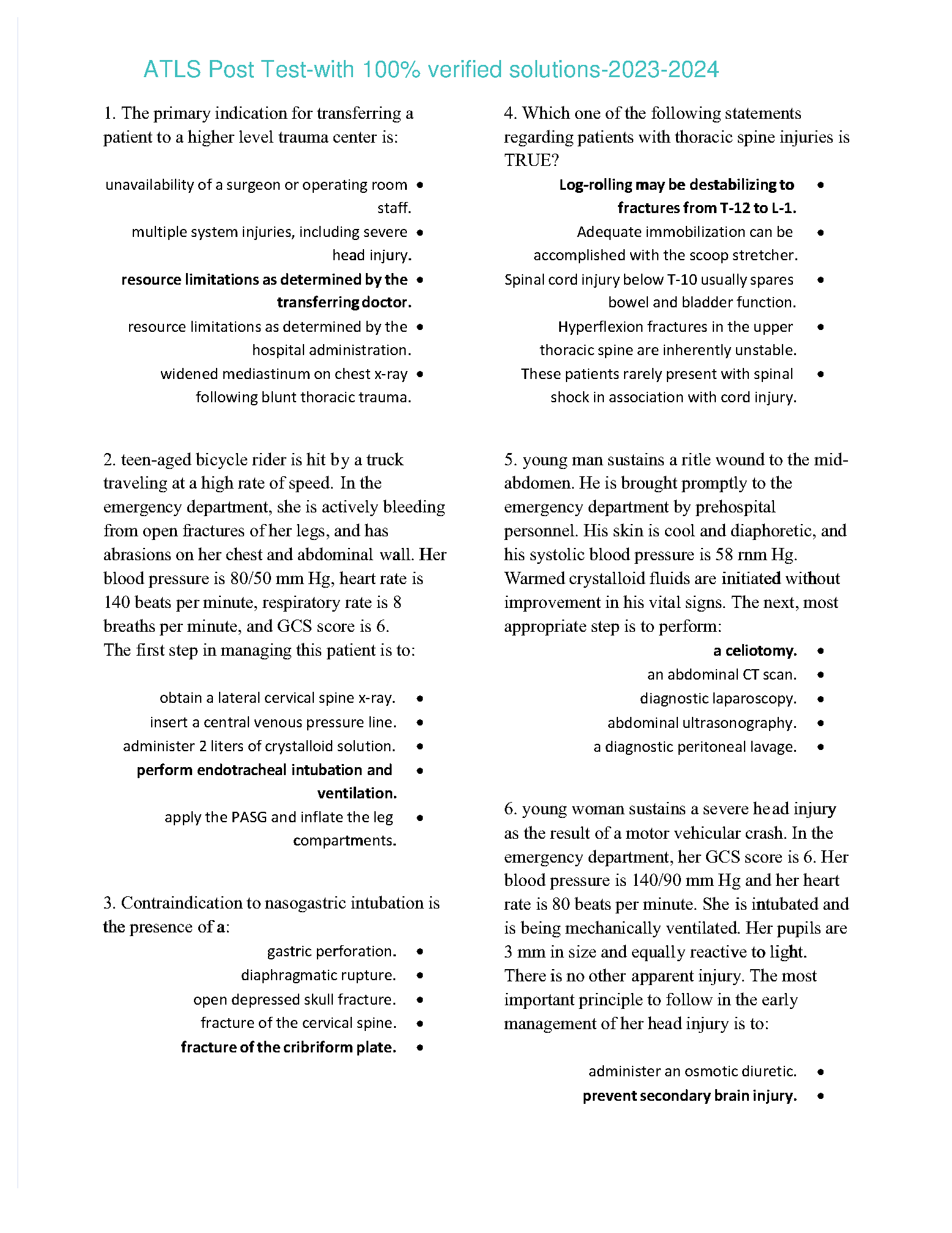 ATLS POST TEST LATEST VERSIONS, EXAMS QUESTIONS AND ANSWERS, A+ GUIDE LATEST 2023/2024