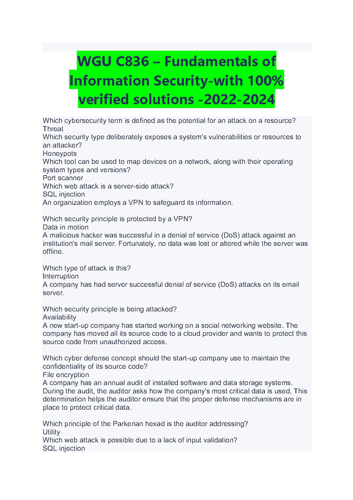 WGU C836 Fundamentals of Information Security. With 100% verified solutions 2023/2024. DOWNLOAD on www.hackedexams.com INSTANTLY.