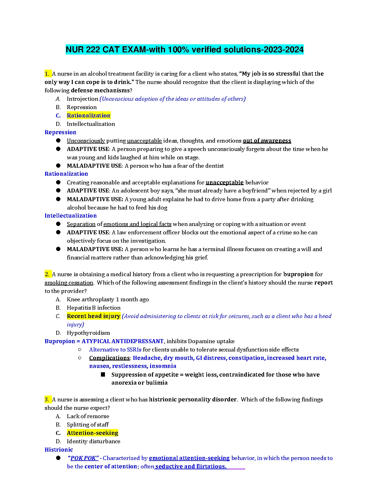 NUR 222 CAT EXAM. With 100% verified solutions 2023/2024. DOWNLOAD on www.hackedexams.com INSTANTLY.
