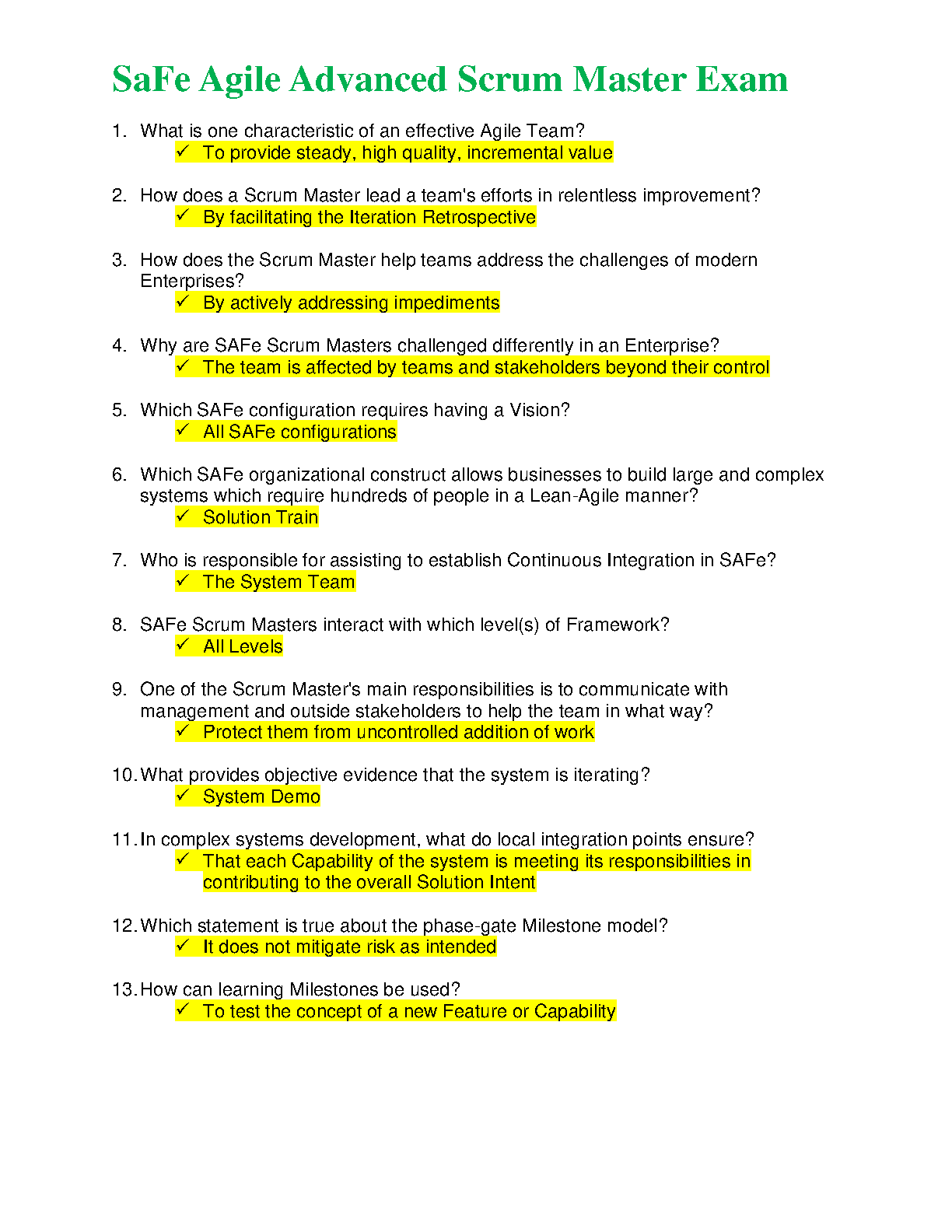 SaFe Agile Advanced Scrum Master Exam. LATEST UPDATED VERSION 2023