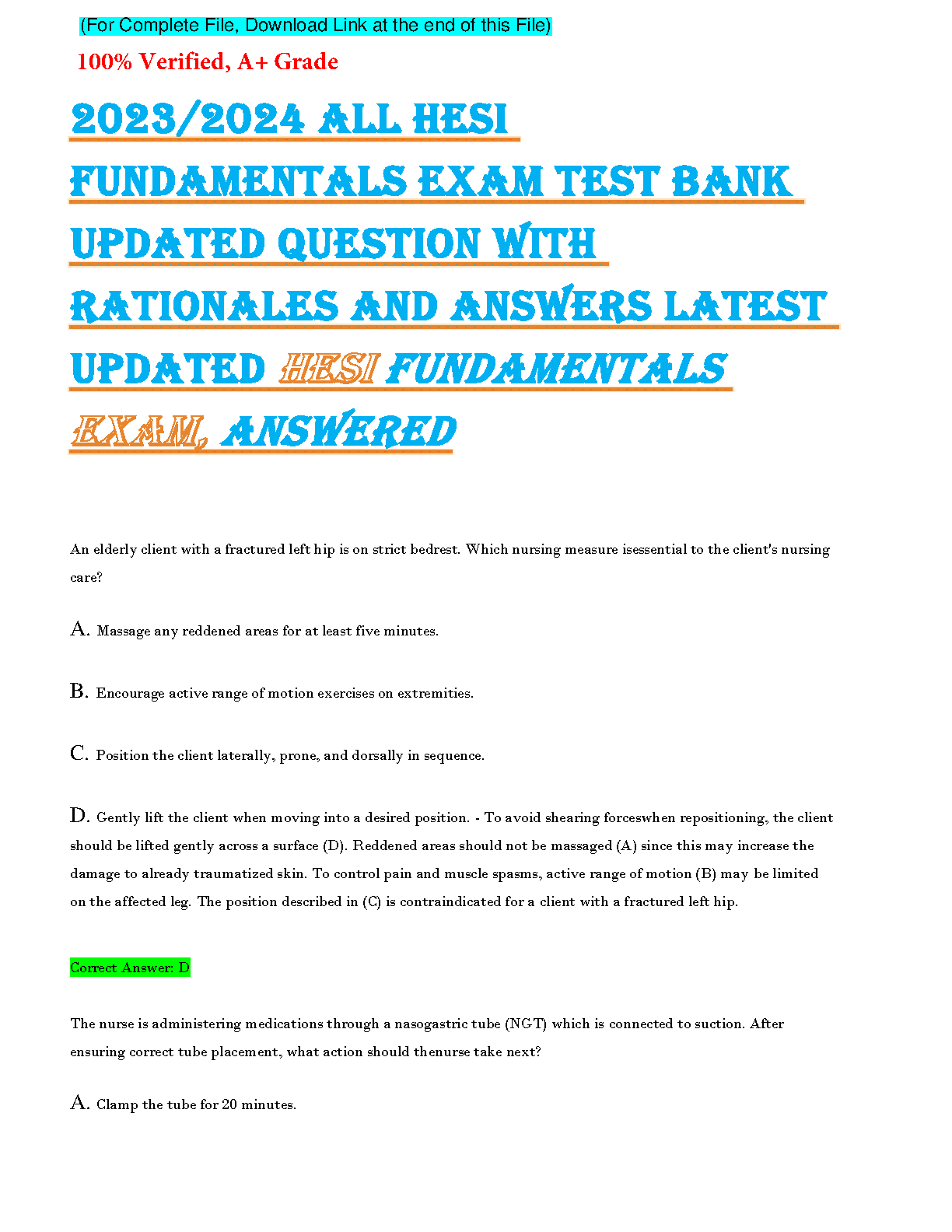 HESI Fundamentals. QUESTIONS AND ANSWERS. GRADED A+ 2023/2024. DOWNLOAD on www.hackedexams.com INSTANTLY.
