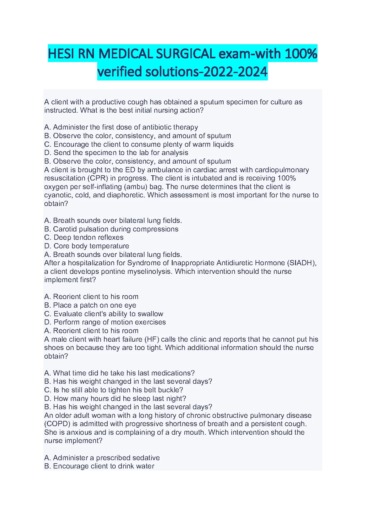 HESI RN MEDICAL SURGICAL. QUESTIONS WITH 10% VERIFIED ANSWERS. GUARANTEED PASS. DOWNLOAD on www.hackedexams.com INSTANTLY.