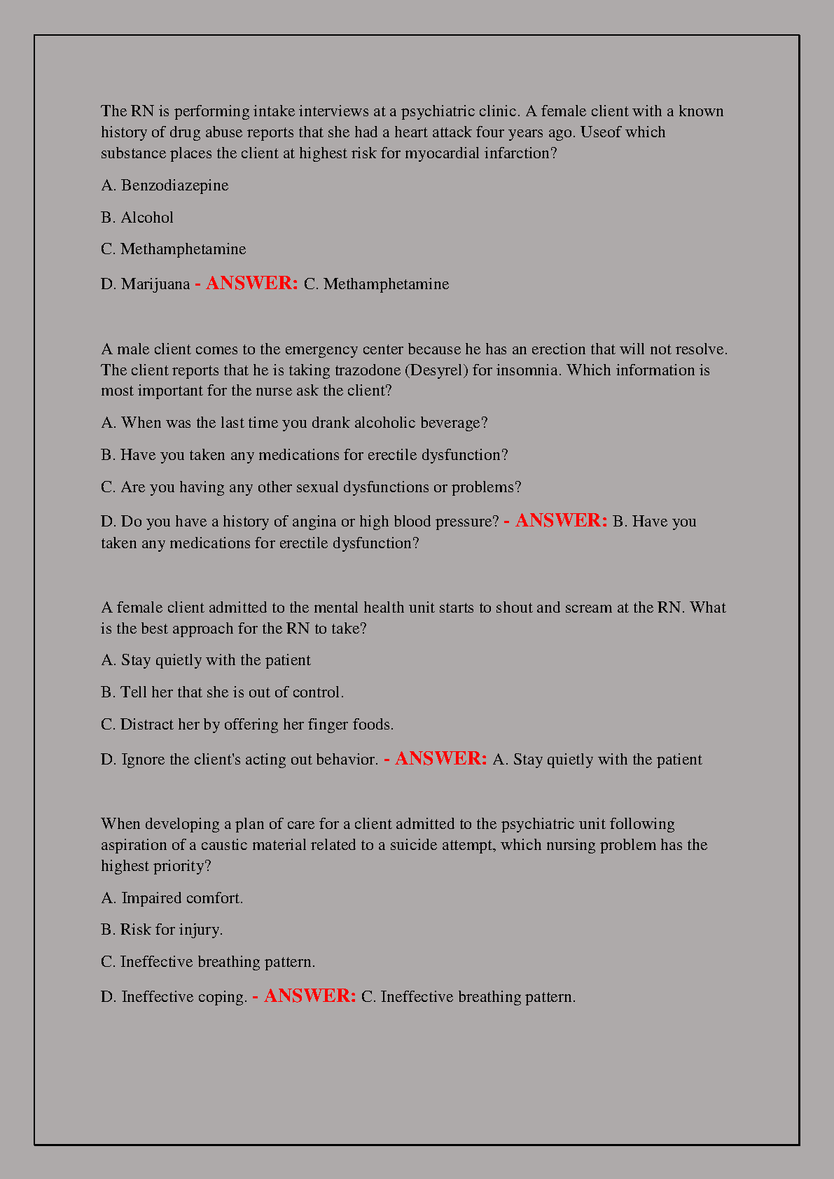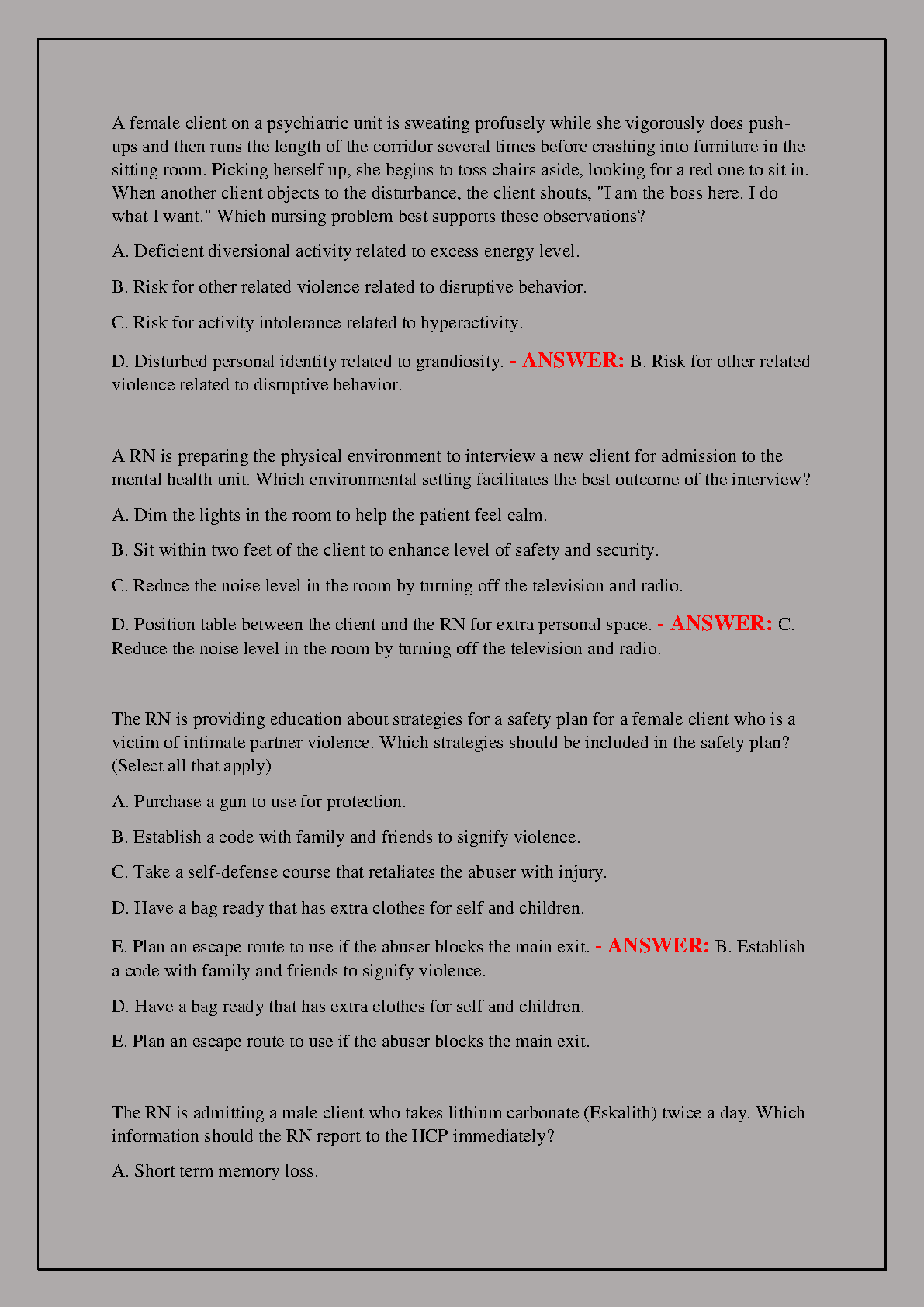 Ace your HESI PN Mental Health Exam with our newly updated 2025/2026 study guide. This comprehensive resource is packed with a wide range of multiple-choice questions that mirror the actual exam format. Each question comes with a verified and revised answer, ensuring you study with the most accurate and relevant material. Designed for practical nursing students, this guide covers all critical topics in mental health nursing, from psychiatric disorders to therapeutic interventions. Prepare effectively, build your confidence, and pass your HESI exam on the very first attempt, avoiding costly and stressful resits.