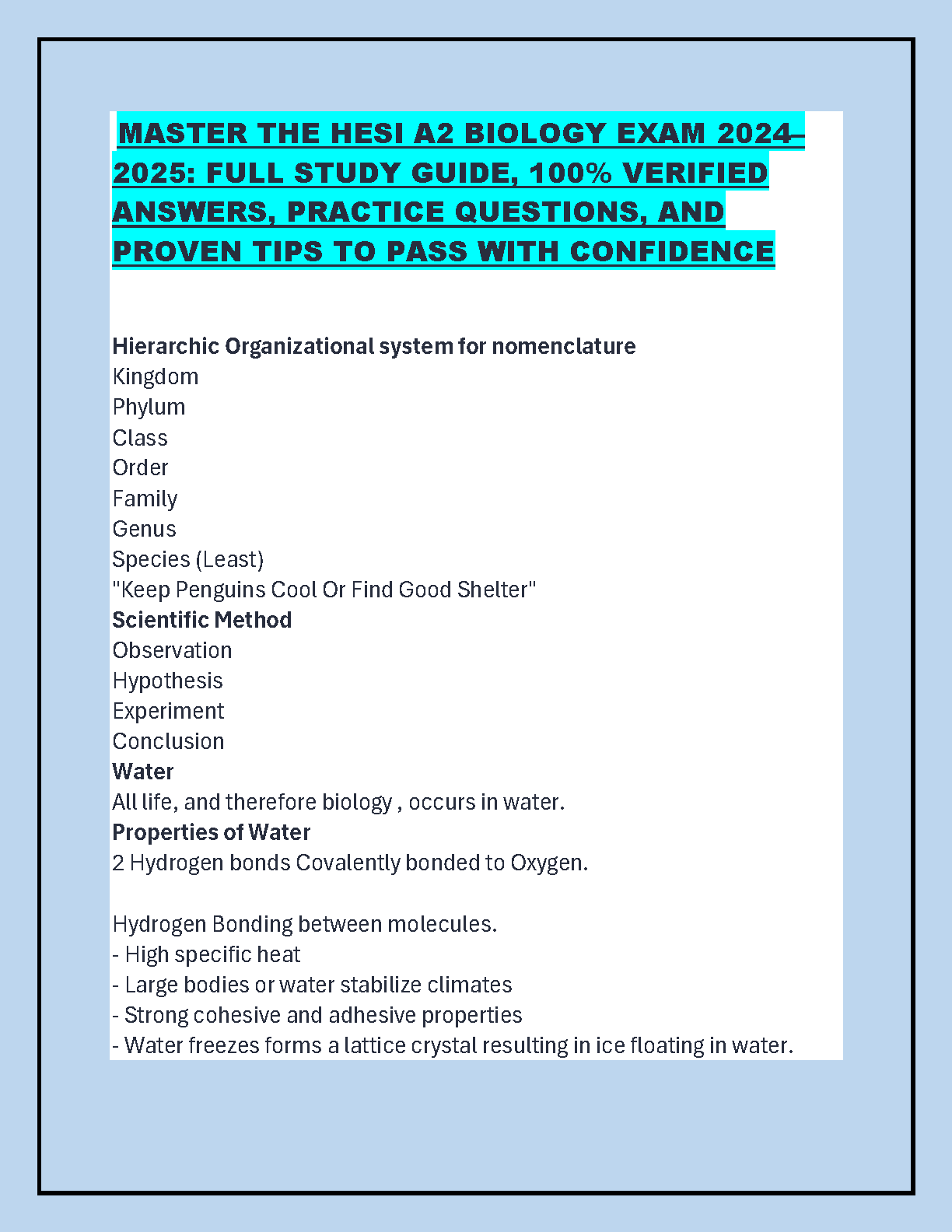 HESI A2 Biology Exam Prep 2025/2026: A Complete Study Guide with Verified Questions, Detailed Answers, and Tips to Pass on the First Try.