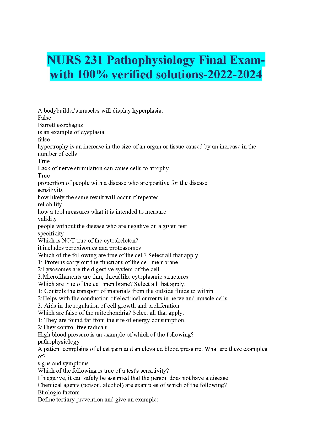 NURS 231 Pathophysiology Final Exam. QUESTIONS AND ANSWERS. GRADED A+. DOWNLOAD on www.hackedexams.com INSTANTLY.