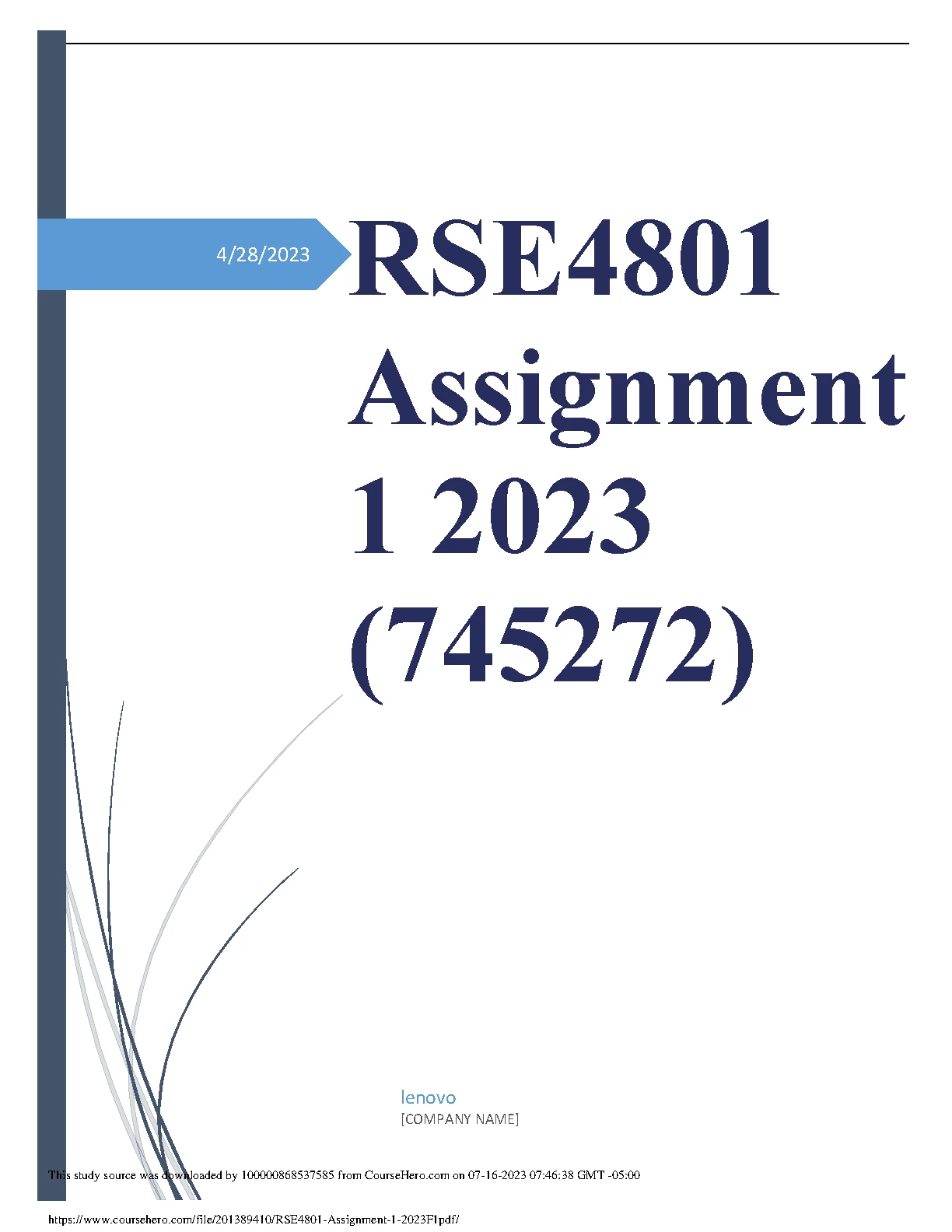 RSE4801 Assignment 1. (745272). LATEST UPDATED VERSION 2023/2024. DOWNLOAD on www.hackedexams.com INSTANTLY.