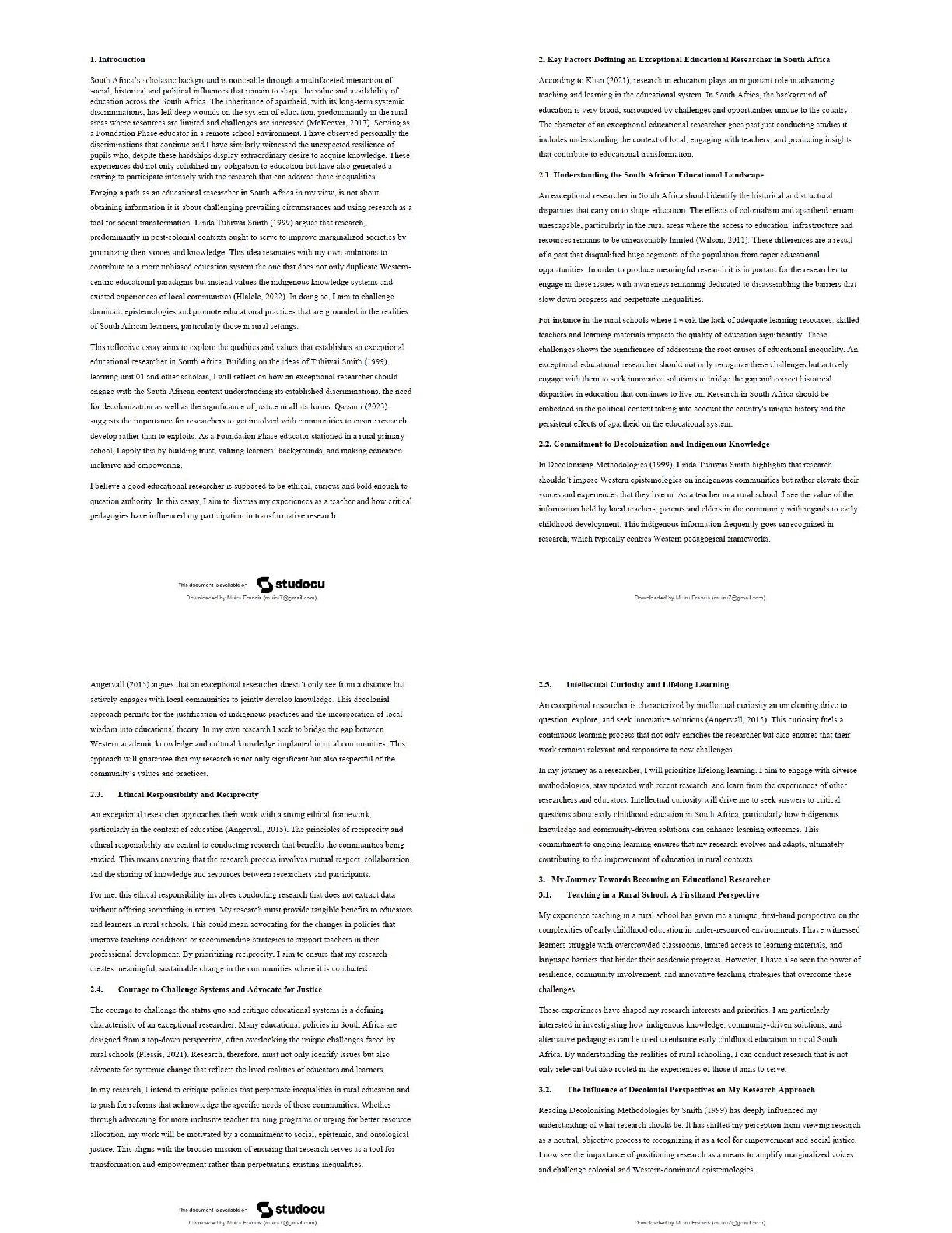 Latest 2025/2026: Reflective Essay on Educational Research in South Africa (A+ Grade Example) | Pass Exams First Try