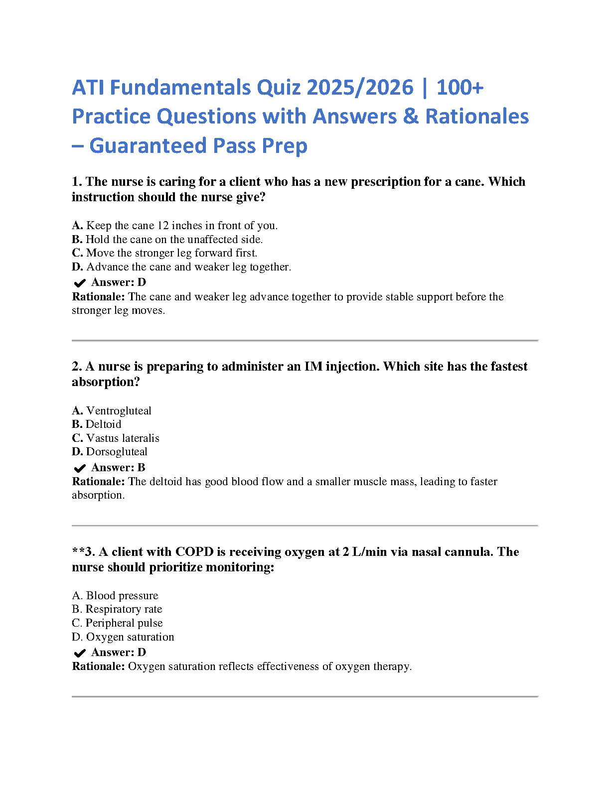ATI Fundamentals Exam 2025/2026: Comprehensive Test Bank with 100+ Q&A and Expert Rationales for First-Attempt Success