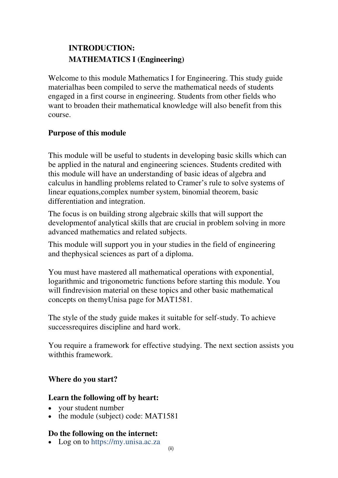 MATHEMATICS I (Engineering) L E Greyling Department of Mathematical Sciences (UNIVERSITY OF SOUTH AFRICA PRETORIA|) 2023