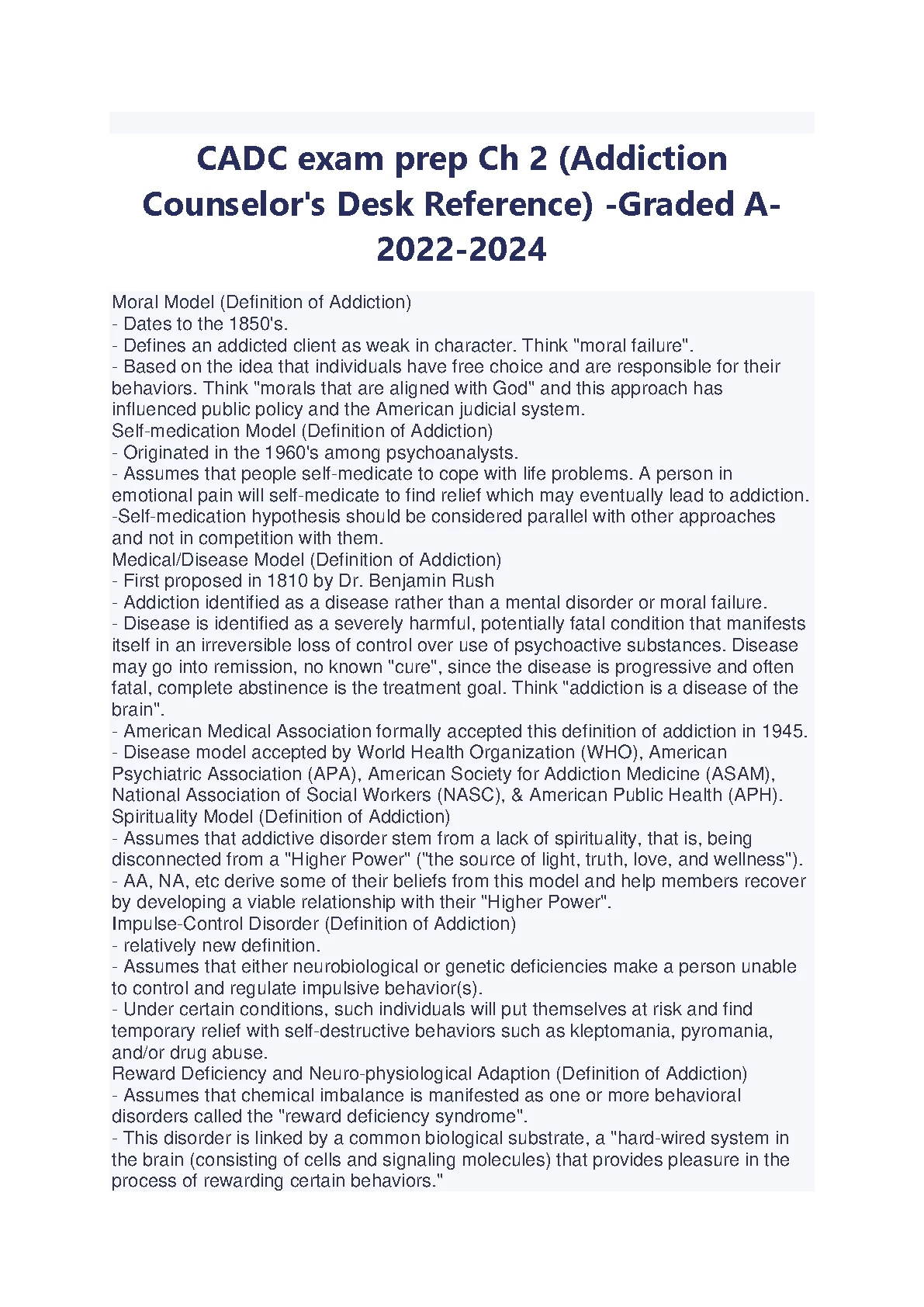CADC exam prep Ch 2 (Addiction Counselor's Desk Reference) 2023/2024. DOWNLOAD on www.hackedexams.com INSTANTLY.