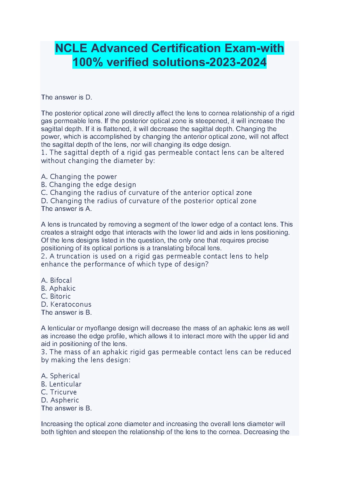 NCLE Advanced Certification Exam. QUESTIONS WITH COMPLETE SOLUTIONS 2023. DOWNLOAD on www.hackedexams.com INSTANTLY.