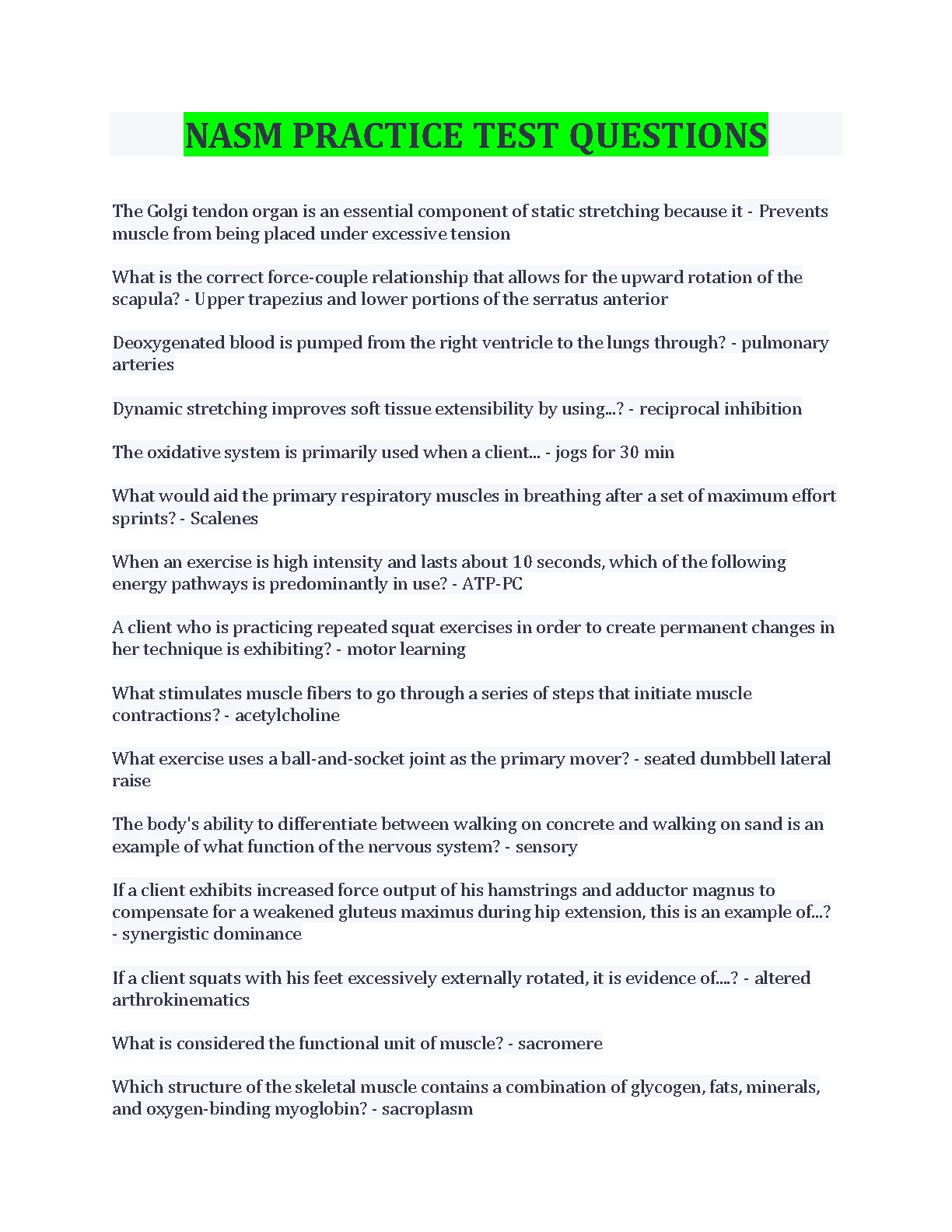 NASM PRACTICE TEST QUESTIONS AND ANSWERS. GRADED A+. DOWNLOAD on www.hackedexams.com INSTANTLY.