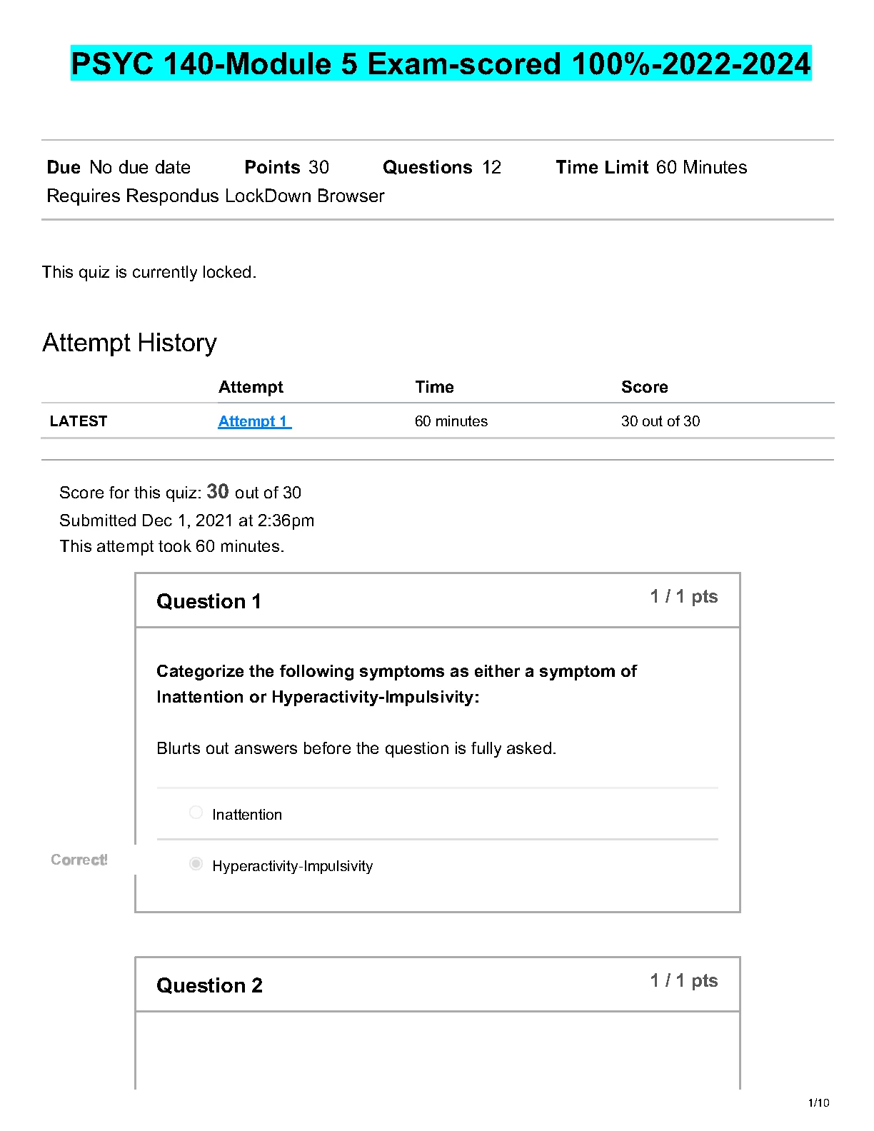 PSYC 140 Module 5 Exam. QUETIONS AND ANSWERS. GRADED A+. DOWNLOAD on www.hackedexams.com INSTANTLY.