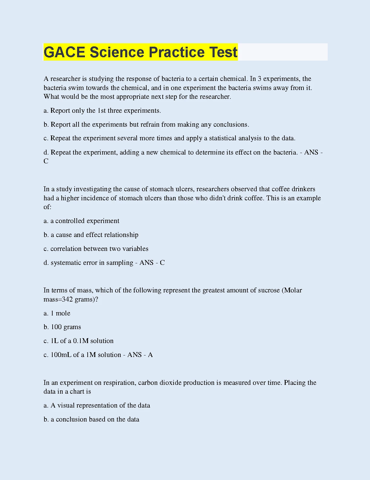 GACE Science Practice Test. MOST RECENT WITH COMPLETE SOLUTIONS 2023. DOWNLOAD on www.hackedexams.com INSTANTLY.