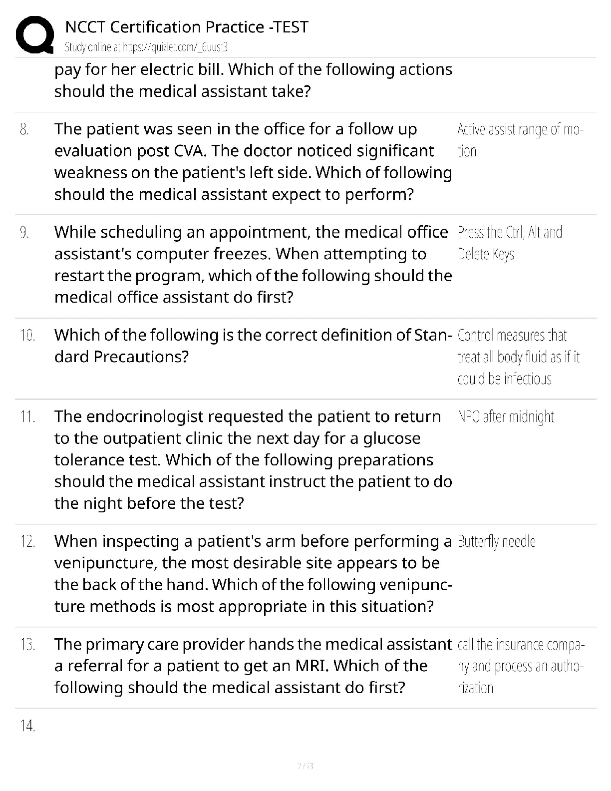 Master the NCCT certification exam with our comprehensive practice test bank. This study guide is packed with verified questions and detailed answers covering essential topics for aspiring medical professionals, including patient care, clinical procedures, medical ethics, and legal responsibilities. By simulating the actual exam format, this resource helps you effectively prepare, identify areas for improvement, and build confidence to achieve certification success. Unlock your potential and take a decisive step in your healthcare career with this essential exam prep tool.