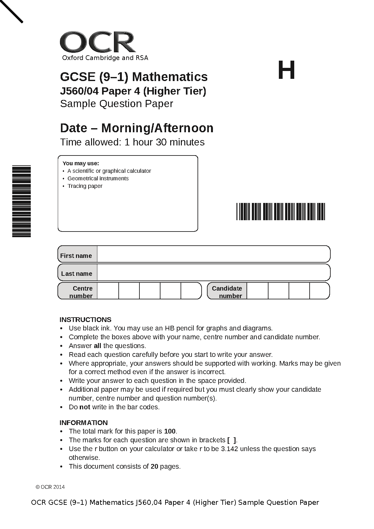 Latest 2025/2026 OCR GCSE (9-1) Maths Higher Tier Paper 4 (J560/04) Sample Paper | Ace Your Exams & Avoid Resits