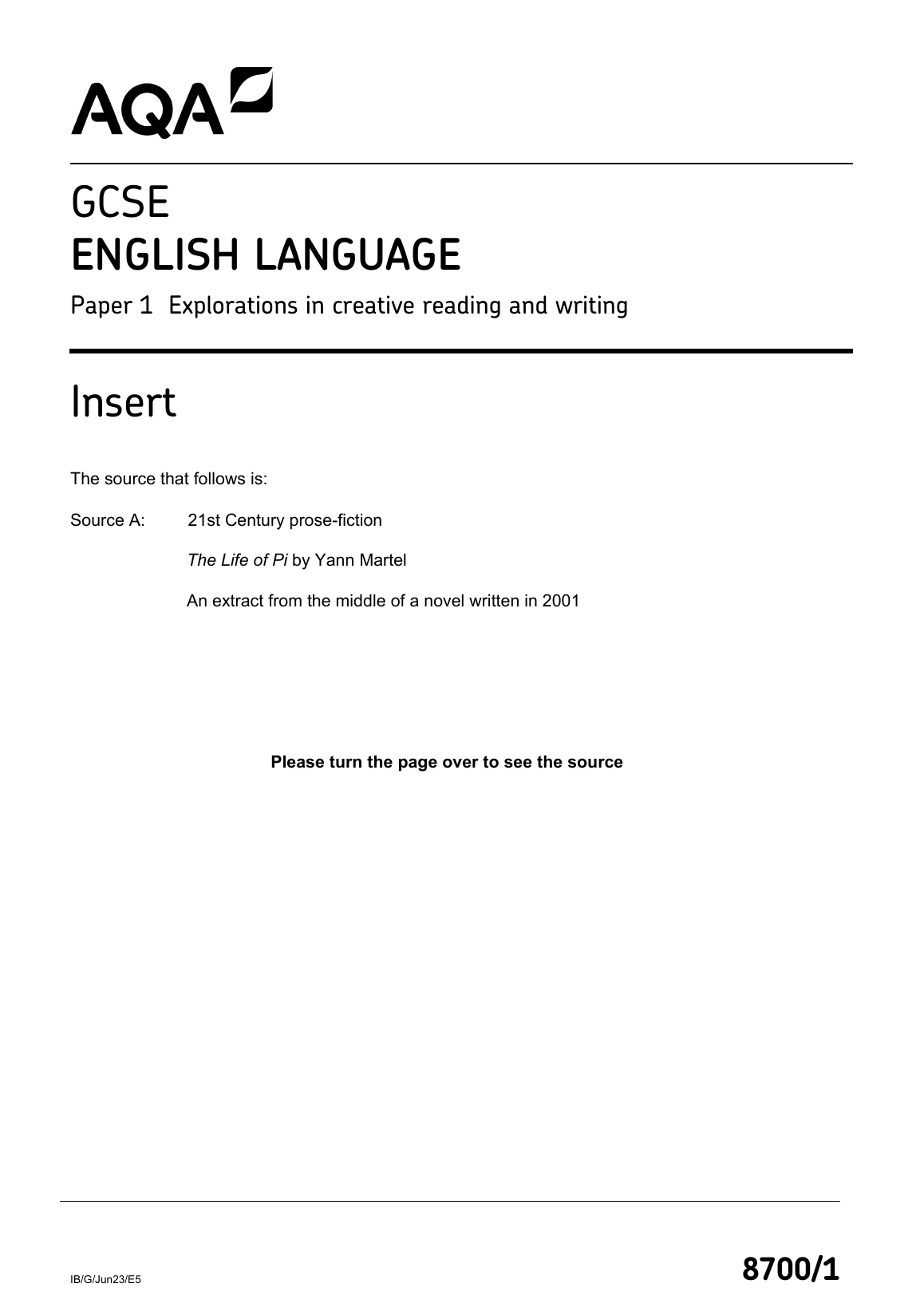 AQA GCSE ENGLISH LANGUAGE PAPER 1 JUNE 2023 INSERT (8700/1: Explorations in creative reading and writing)