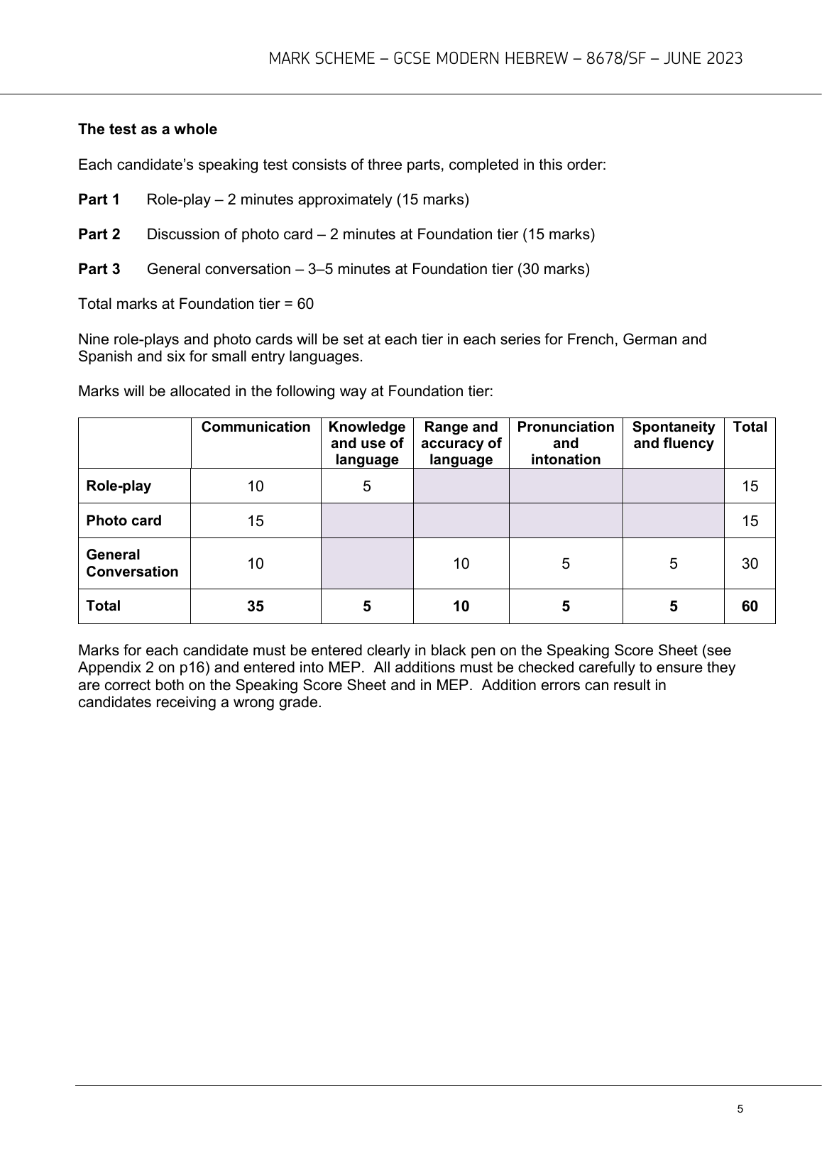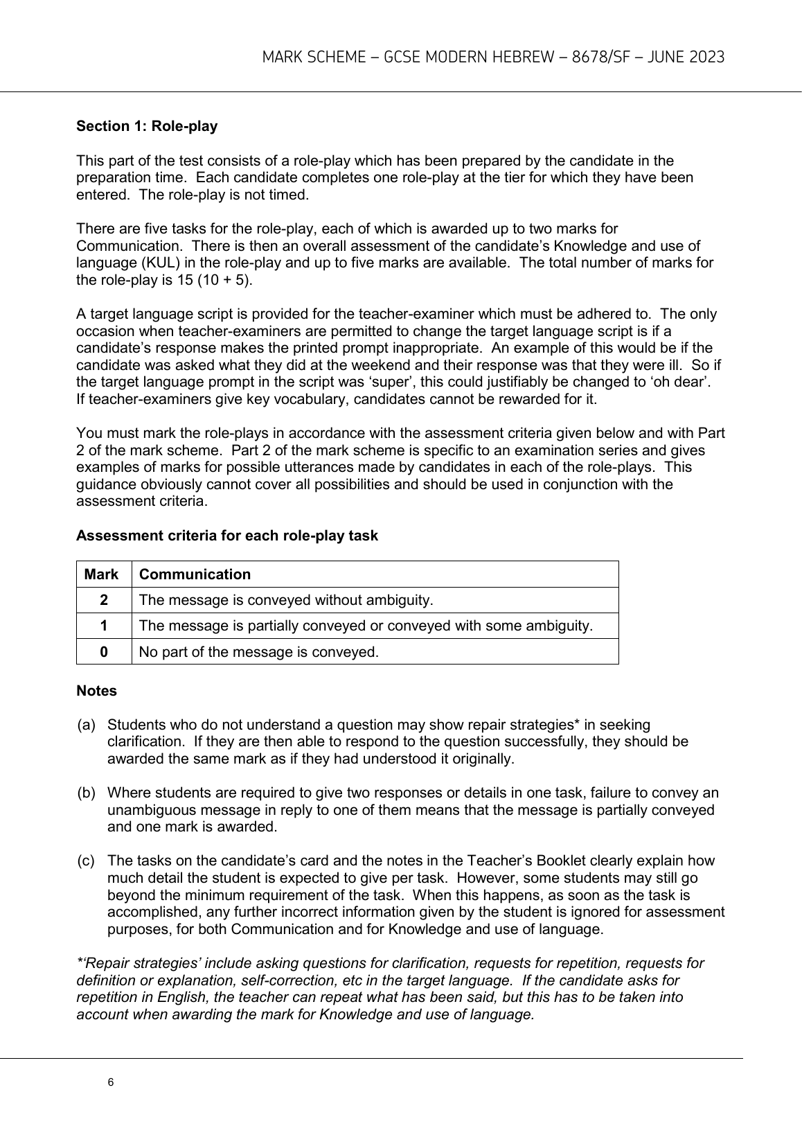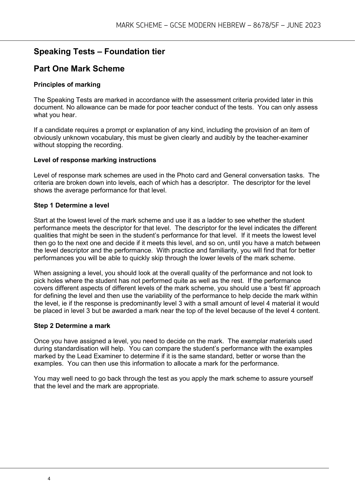 AQA GCSE MODERN HEBREW PAPER 2 JUNE 2023 (8678/SF: Speaking Foundation)