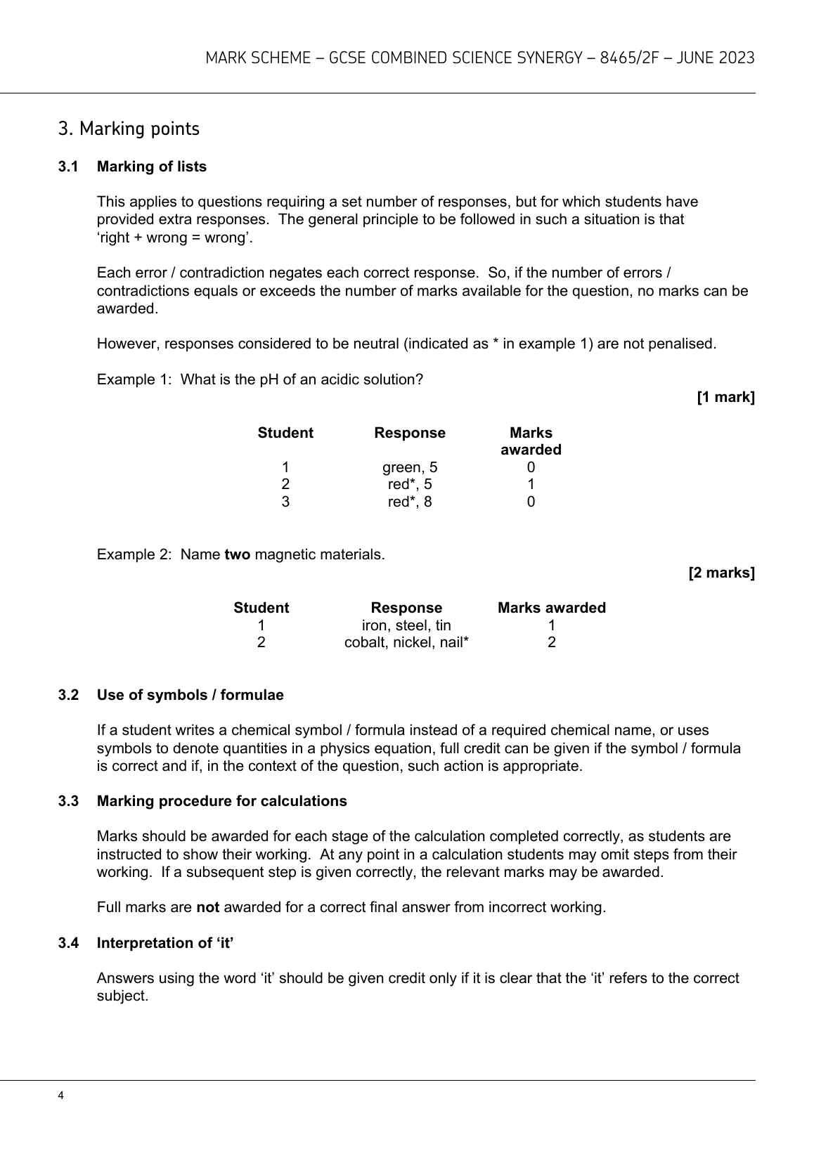 AQA GCSE COMBINED SCIENCE: SYNERGY FOUNDATION TIER PAPER 2 JUNE 2023 MARK SCHEME (8465/2F: Life and Environmental Sciences)