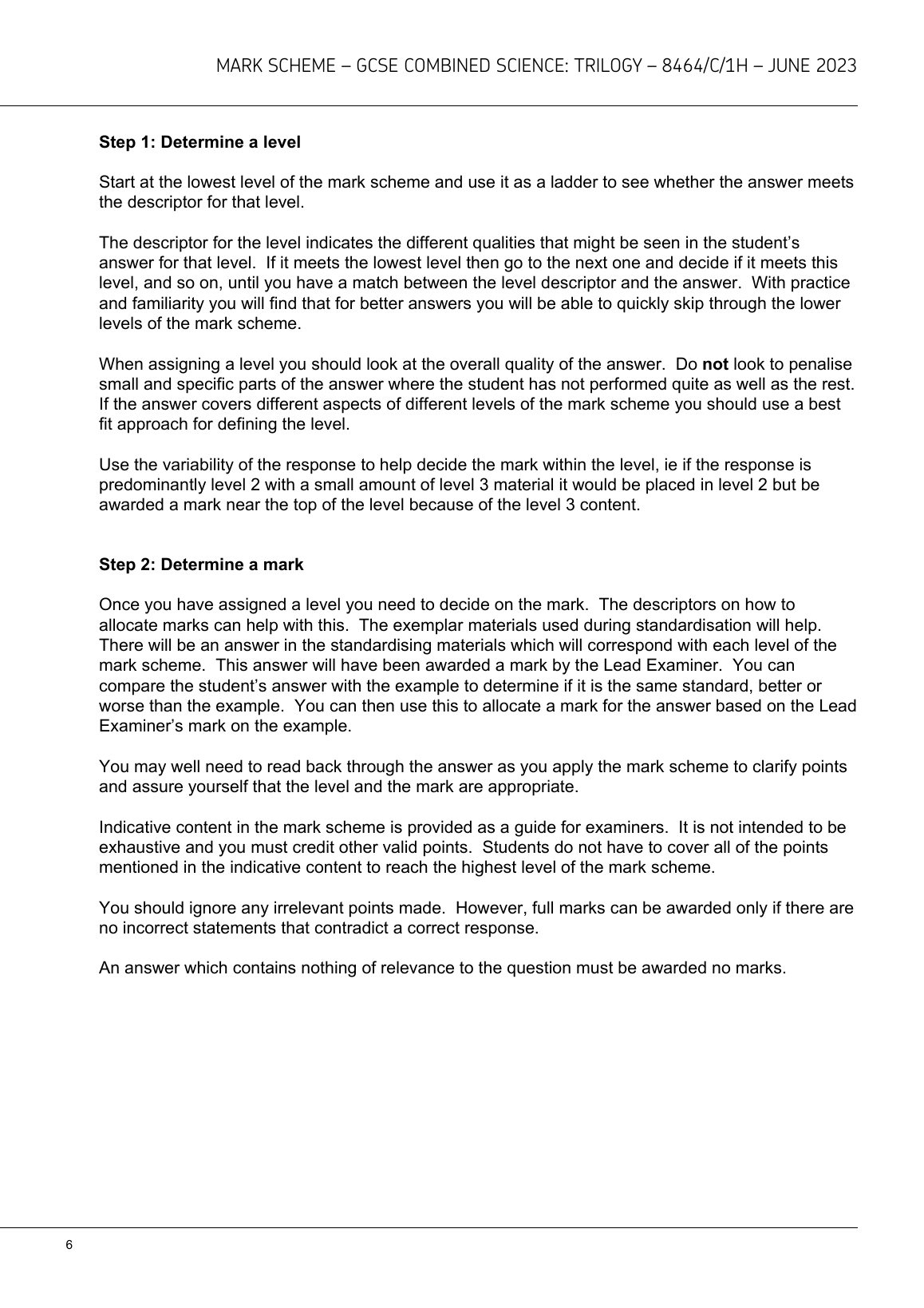 AQA GCSE COMBINED SCIENCE: TRILOGY CHEMISTRY PAPER 1H JUNE 2023 MARK SCHEME (8464/C/1H)