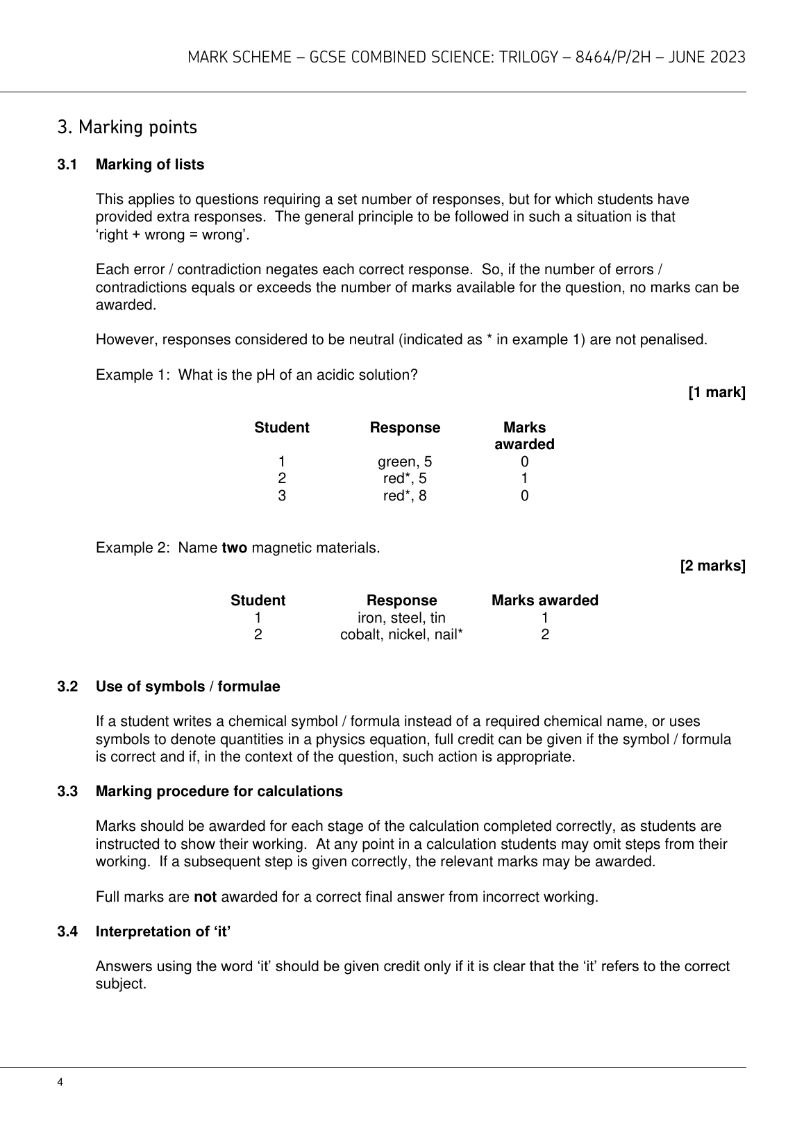 AQA GCSE COMBINED SCIENCE: TRILOGY PHYSICS PAPER 2 JUNE 2023 MARK SCHEME (8464/P/2H)