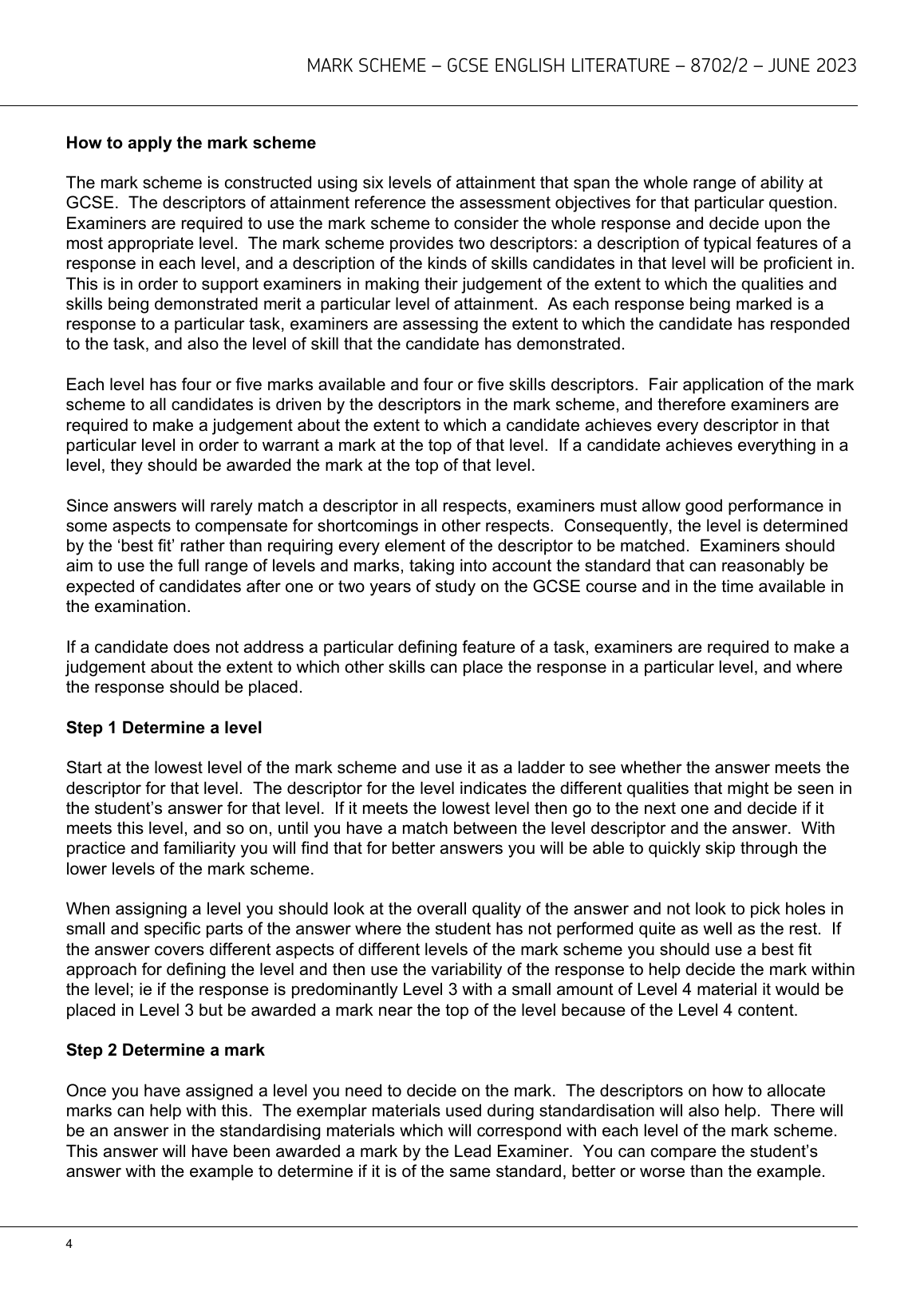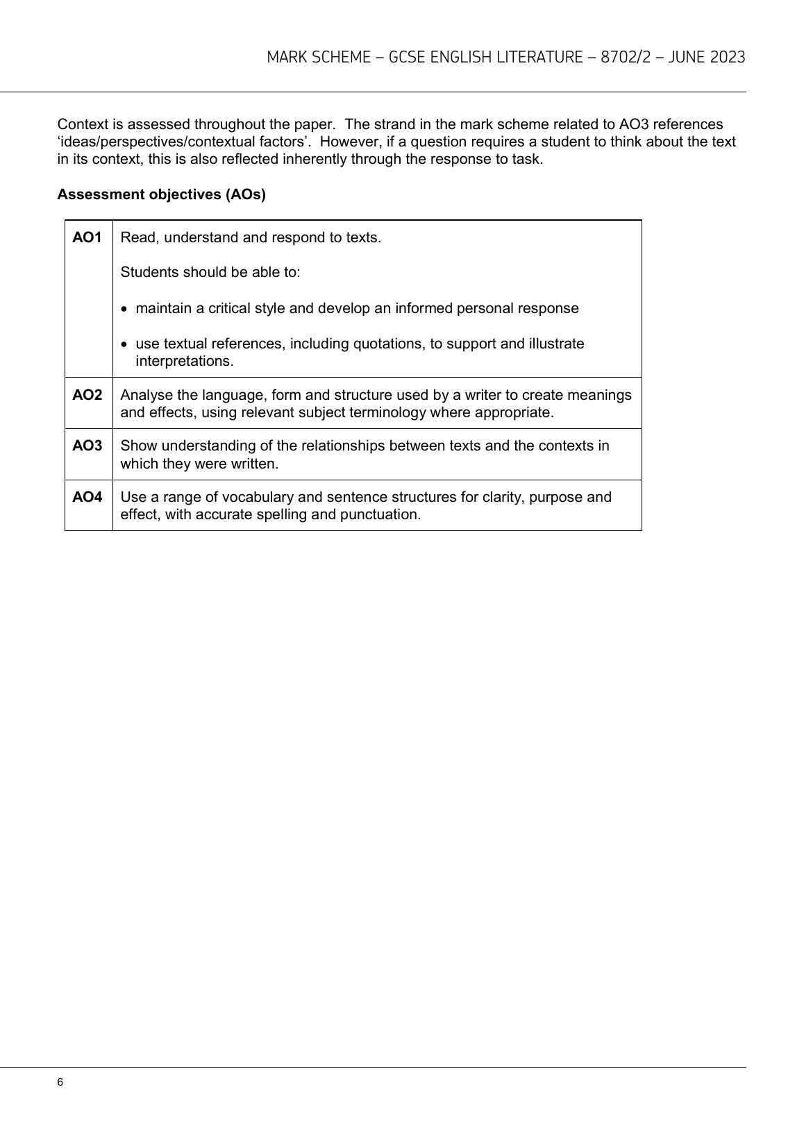 AQA GCSE ENGLISH LITERATURE PAPER 2 JUNE 2023 MARK SCHEME (8702/2: Modern texts and poetry)